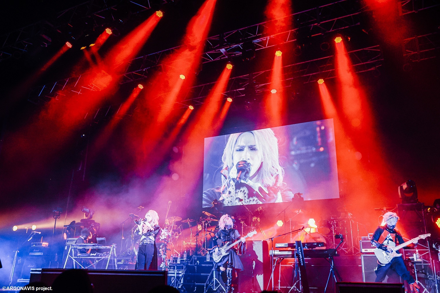 「さぁ、まだまだ行こうか!眷属たちよ!」と鞭を打つように「影と光」、「XX in Wonderland」と激しめな選曲で続ける。「ピエロ」では「さぁ来い!我が眷属よ!」とLIGHTとZACKを呼び込み、ユニゾンさせる。まるでミュージカルのような「ラプソディア」では。HARUがベースをぐるりとショルダーで回したり、終始圧倒的なパフォーマンスで我々を彼らの世界へと誘ってくれるが、今宵の夜会はここまで。王の帰還も束の間、再び悠久の休息へと姿を消していった。