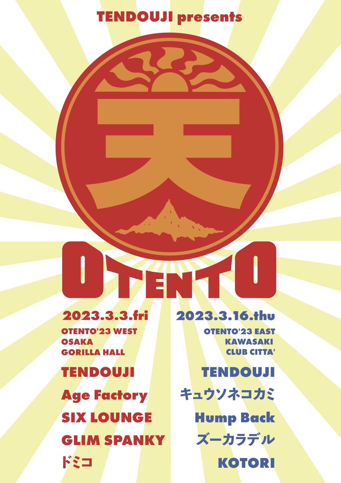 2023年3月3日(金)にGORILLA HALL OSAKA、3月16日(木)川崎 CLUB CITTA’にて行われるTENDOUJI初主催フェス『OTENTO』の最終ゲストが発表された。