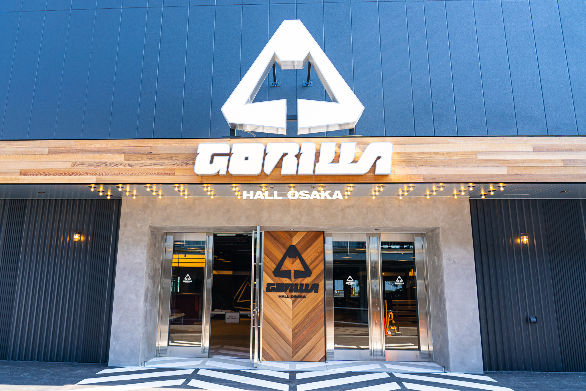 「GORILLA HALL OSAKA(ゴリラホールオオサカ)」(以下、「GORILLA HALL」)は、「最高の遊び場を」がコンセプトのライブハウス。鉄骨の2階建で、総面積は2,223㎡。スタンディングの場合、1階席・2階席で合わせて1,130人を収容することができる。