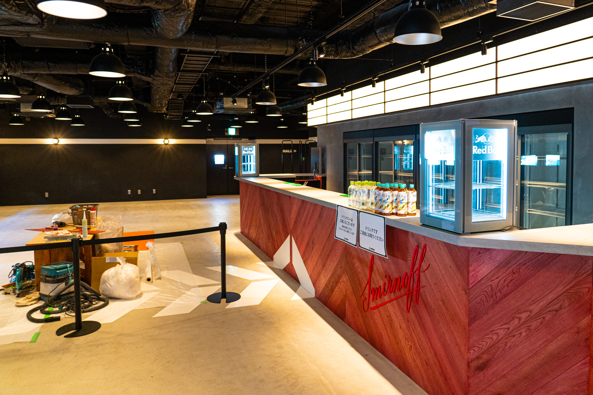 1階のドリンクカウンター。奥のスペースは物販などで使用も可能