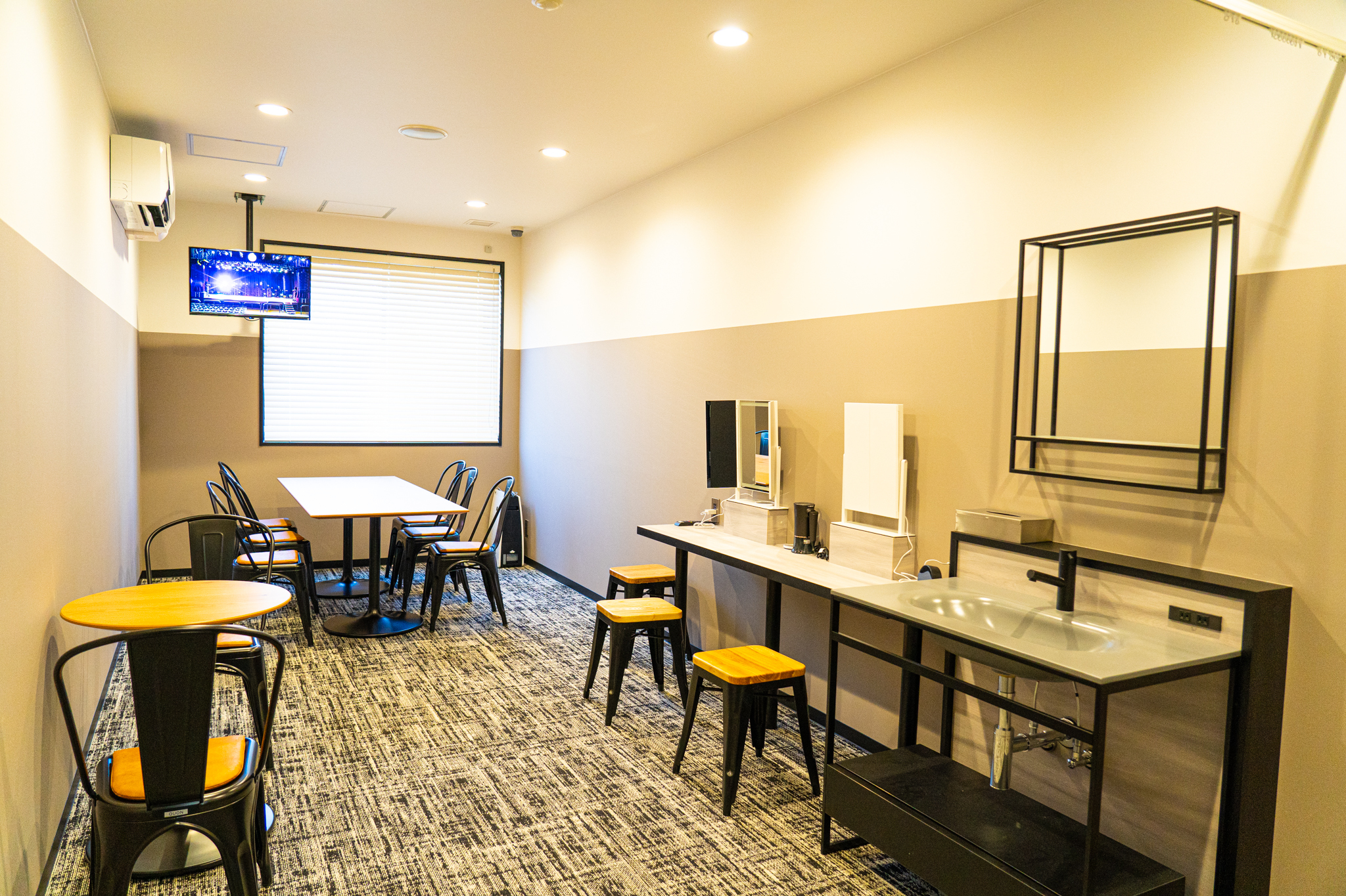 レストランのような楽屋ラウンジ。出演者やスタッフの交流の場に