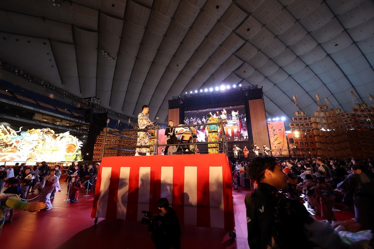 簡単な楽曲説明後、小渕の「東京のど真ん中で、最高の盆踊り、踊りましょう!」の掛け声と共に盆踊りがスタート。櫓の周りやステージには色とりどりの浴衣を着用したダンサーたちも登場。さらに一般の来場者たちも踊りの輪に参加し、櫓を中心に円が広がっていくように振付が伝達していった。ラストは小渕の掛け声と大きな和太鼓の音が、会場内に響き渡りイベントは終了した。