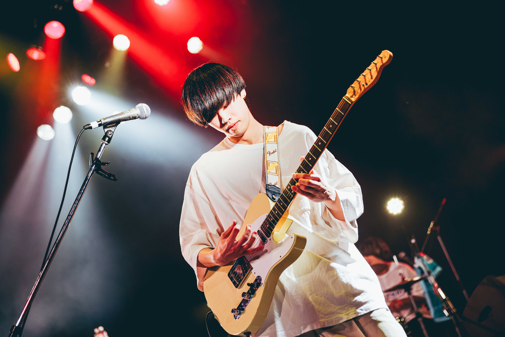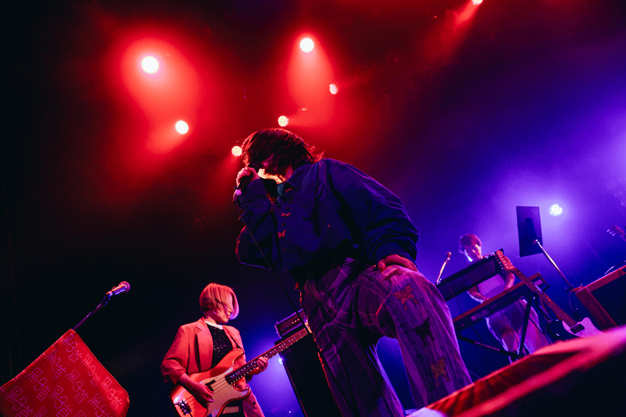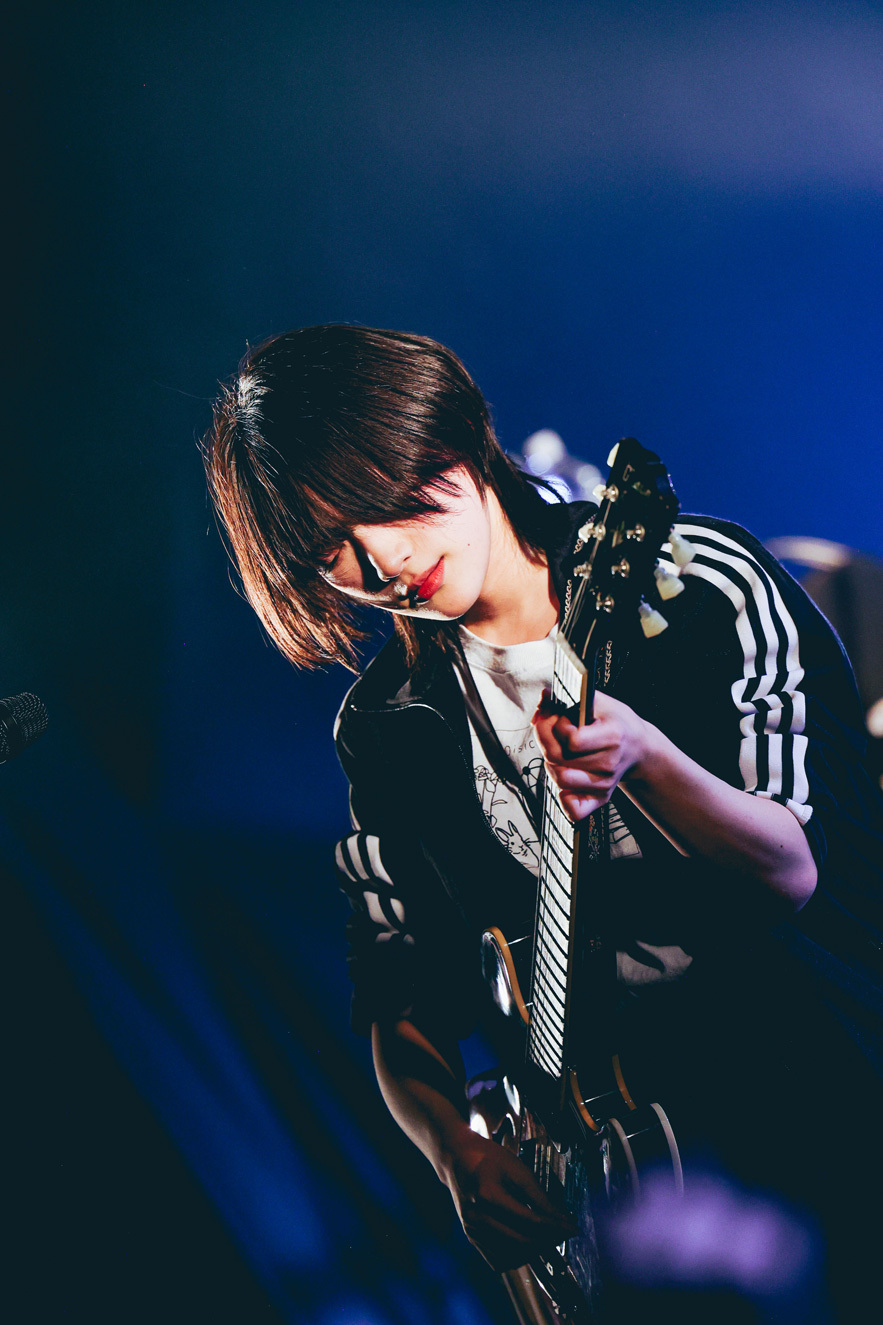 MCでは古都子が「このイベントは私たちと同じ学生の皆さんが作られているということで、そんな素敵なイベントに呼んでくださってめちゃくちゃ嬉しいです。皆さんに負けないくらい素敵なライブをするので、最後までよろしくお願いします」と挨拶し、「モラトリアム」へ。疾走感のあるロックサウンドで加速した後は、ものすごい声量でイントロから圧倒した「ワンルーム」でヒリつかせる。さらに、これまでの低めの歌声とは全く違う、天井まで届くような高音ボーカルを生々しく響かせて「午前零時」を披露。危うさを感じさせる詞世界と圧倒的にパワフルな歌声、感情の起伏が入り混じる演奏は圧巻だった。