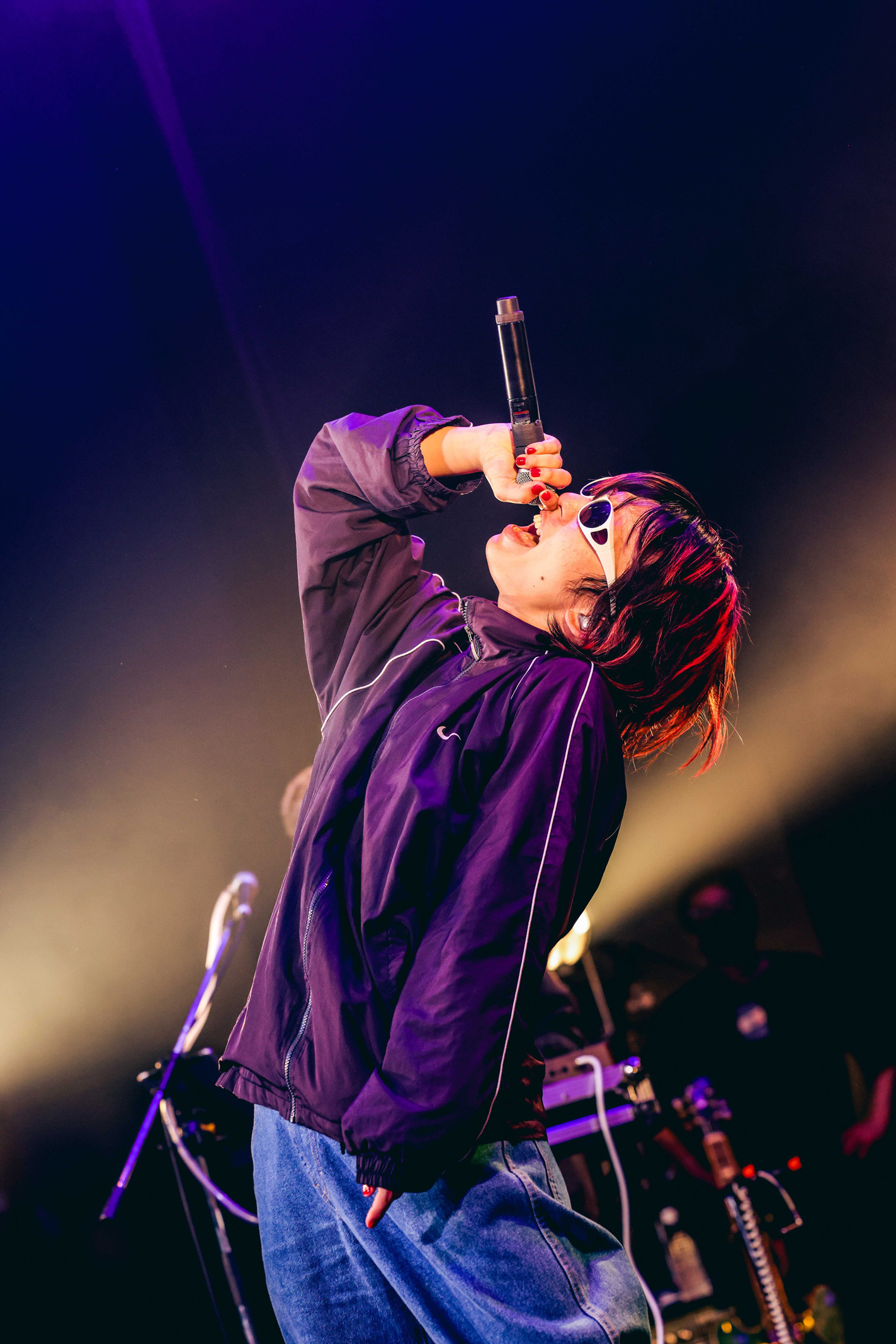「一緒に踊ってください!」と投下されたファンクチューン「O.W.A.」では、ダイナミックなグルーヴに体が揺れる。しかし物足りないとばかりに「恥ずかしがってる奴いるだろ。見てるからな! その先に行こうぜ!」と叫ぶと、これまでにない勢いで会場全体がジャンプ! ラストは「ロックンロールをぶちかましたいと思います」と、自らもギターを持ち「明日もこの世は回るから」で勢いよく駆け抜けた。ギターが3本になったことでさらにサウンドの厚みが増す。サングラスを吹っ飛ばすほど頭を振って演奏する姿からは気合いが伝わる。ギタリスト3人が前で並んでプレイする様子は圧巻だった。華やかな照明も後押しし、堂々たるパフォーマンスで本編を終えた。