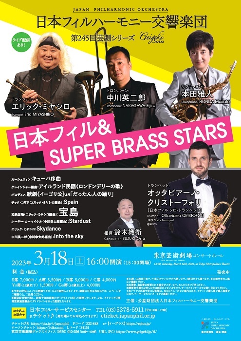 SUPER BRASS STARS(Tp エリック・ミヤシロ、Tb 中川英二郎、 Sax 本田雅人)が出演し、超絶テクニックでブラスファンを魅了するスーパースターたちがオーケストラとライブセッションする。