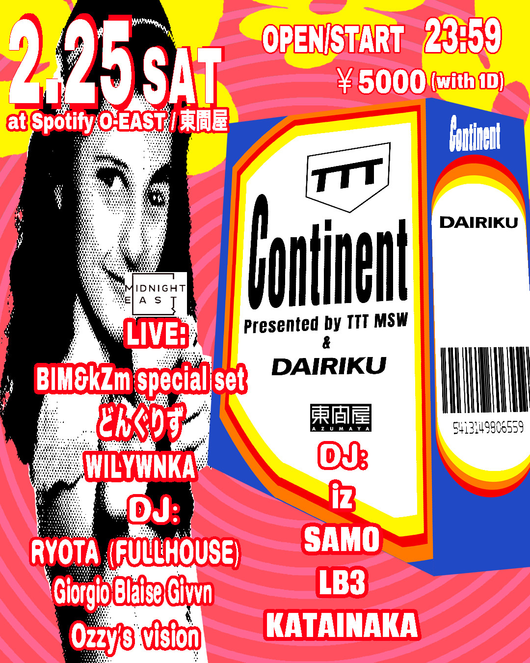 第二弾となる、2月25日(土)の夜は、渋谷・O-EASTにてナイトイベントを開催。前売りチケット1000枚限定のみのスペシャルパーティーで、前売りチケットは1月25日(水)21:00から販売開始。
