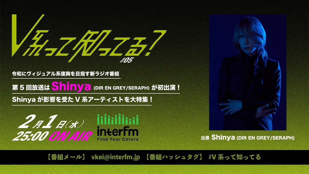 interfmにて放送中の新ラジオ番組『#V系って知ってる?』の第5回ゲストに、Shinya(DIR EN GREY/ SERAPH)が出演することが決定した。