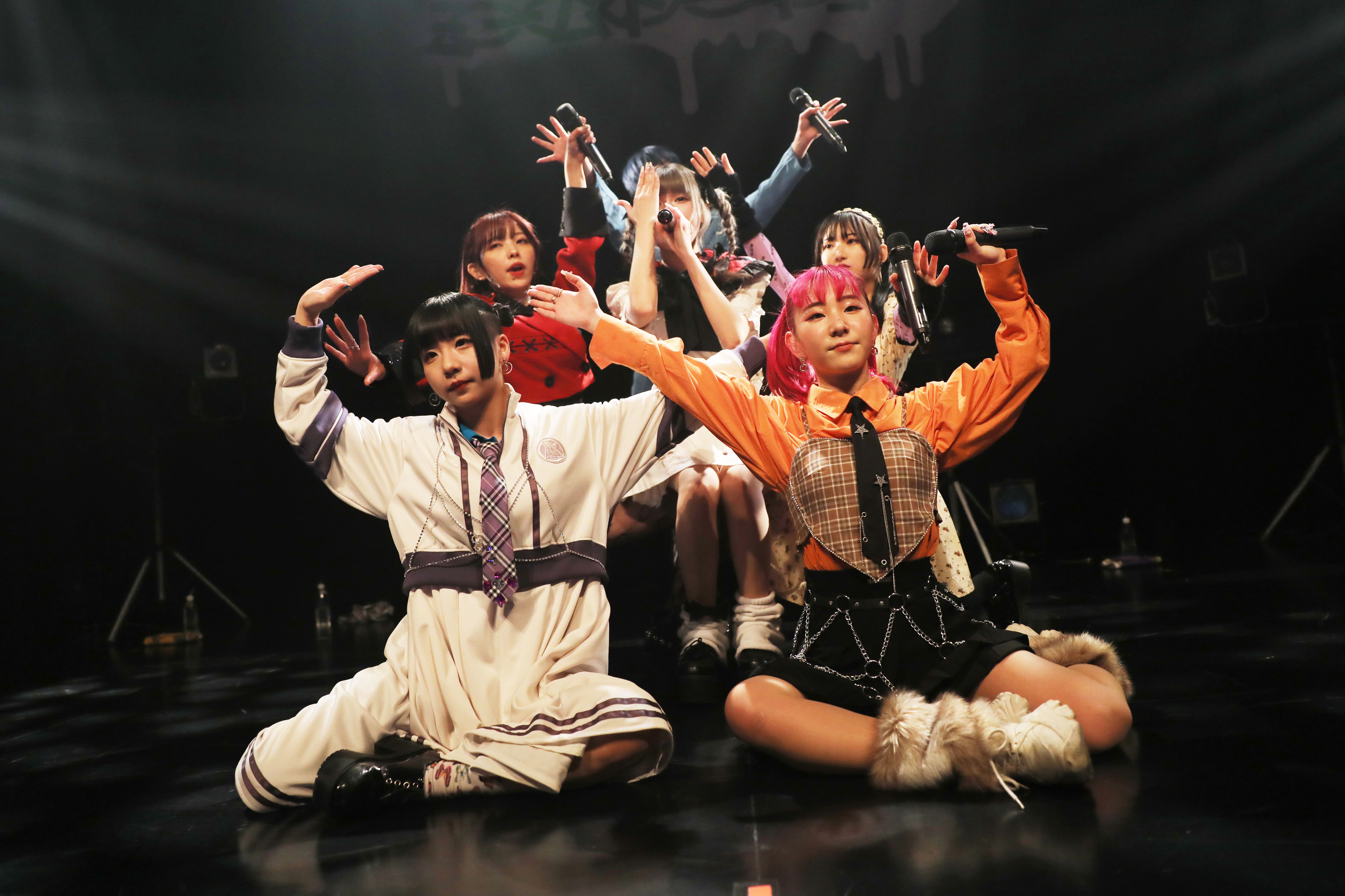 アンコールでは、拳銃を構える振り付けとスリリングで性急な曲調が印象的な新曲「SNSKILLER」を披露。MCでは6人で初披露した「メテオ蜃気楼」を振り返り、歌詞に出てくる“アイス”にちなんで、「パルム! ピノ! やっぱりガリガリくんが好き! とか、アイスミックスを作ったらいいんじゃないの?」とMITSUKIが提案して盛り上がったり、2月に歌謡ポップスチャンネルで放送されるミームトーキョーのドキュメンタリーや、「SNSKILLER」が4月に配信されることなど、ここからの明るい展望を楽しく話した6人。アンコールラストは、ペンライトの光と手拍子に包まれて、「ブルーレター」をたっぷり気持ちを込めて熱唱。温かい雰囲気とここからの希望が溢れる中、会場中の笑顔でワンマンライブを締めくくった。