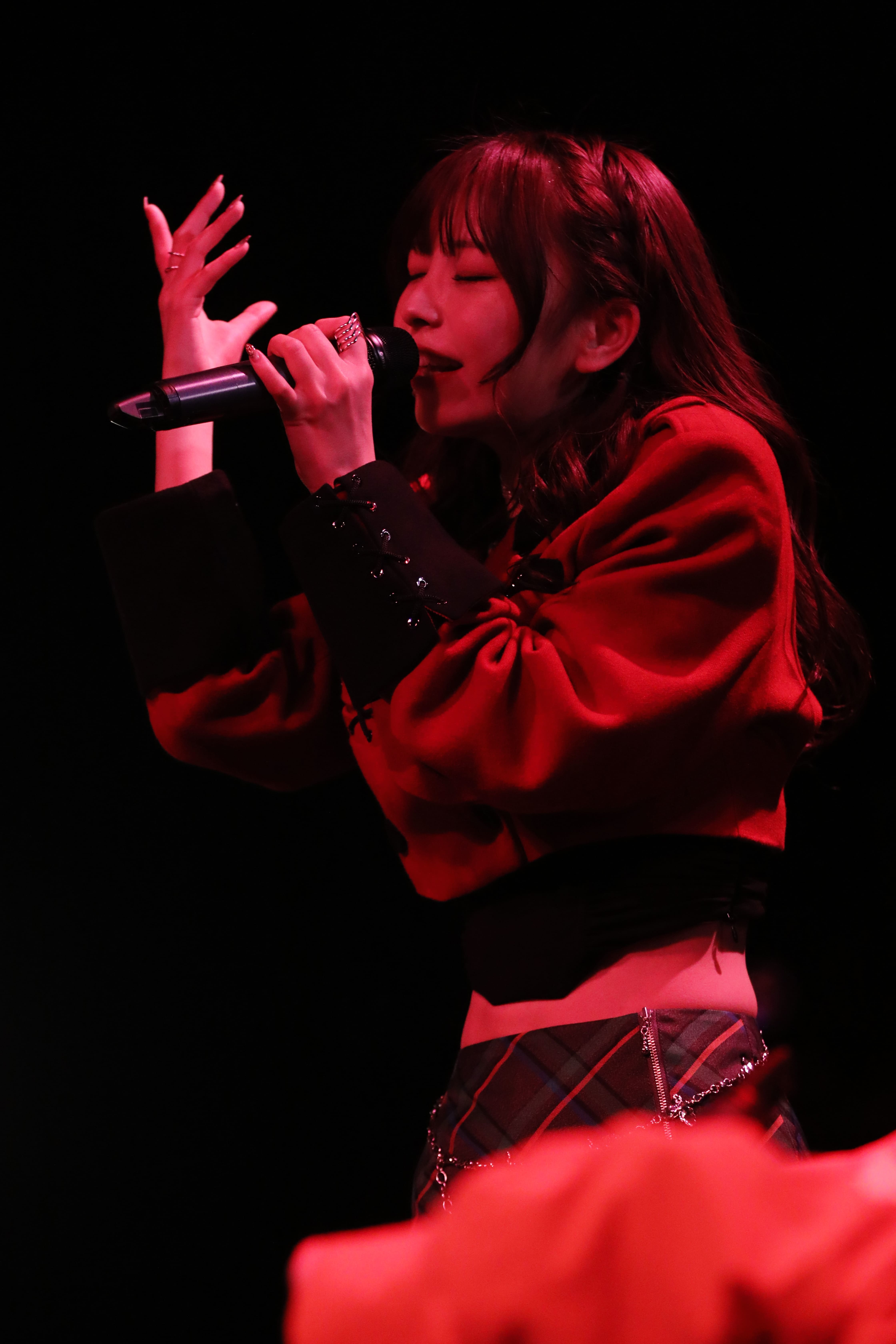 続いてステージに登場したのはRITO。自身作詞による「Mephisto」を表情豊かな歌とラップ、広いステージを活かしたダンスと、楽しむ余裕さえ見える堂々としたソロステージを見せると、「ミームトーキョーでソロ曲がもらえるなんて思ってもみなくて、本当に嬉しい気持ちでいっぱいです」と喜びを語る。「ミームトーキョーに加入して、最初の頃は大きい舞台に立ちたいとか、色んな景色を見たいと思うことは無かった」という告白で始まったMCでは、「そんな奇跡は一握りのアイドルしか見れない景色で、上手くいかない時に悲しくなりたくないんでそう思ってたんです」とその理由を語ると、「でも、やっと覚悟が出来ました。何があってもこのグループで夢を見て、夢を叶えます」と宣言。