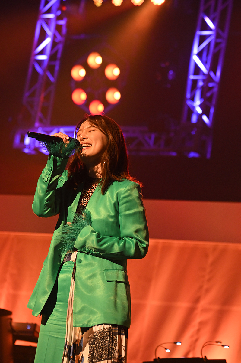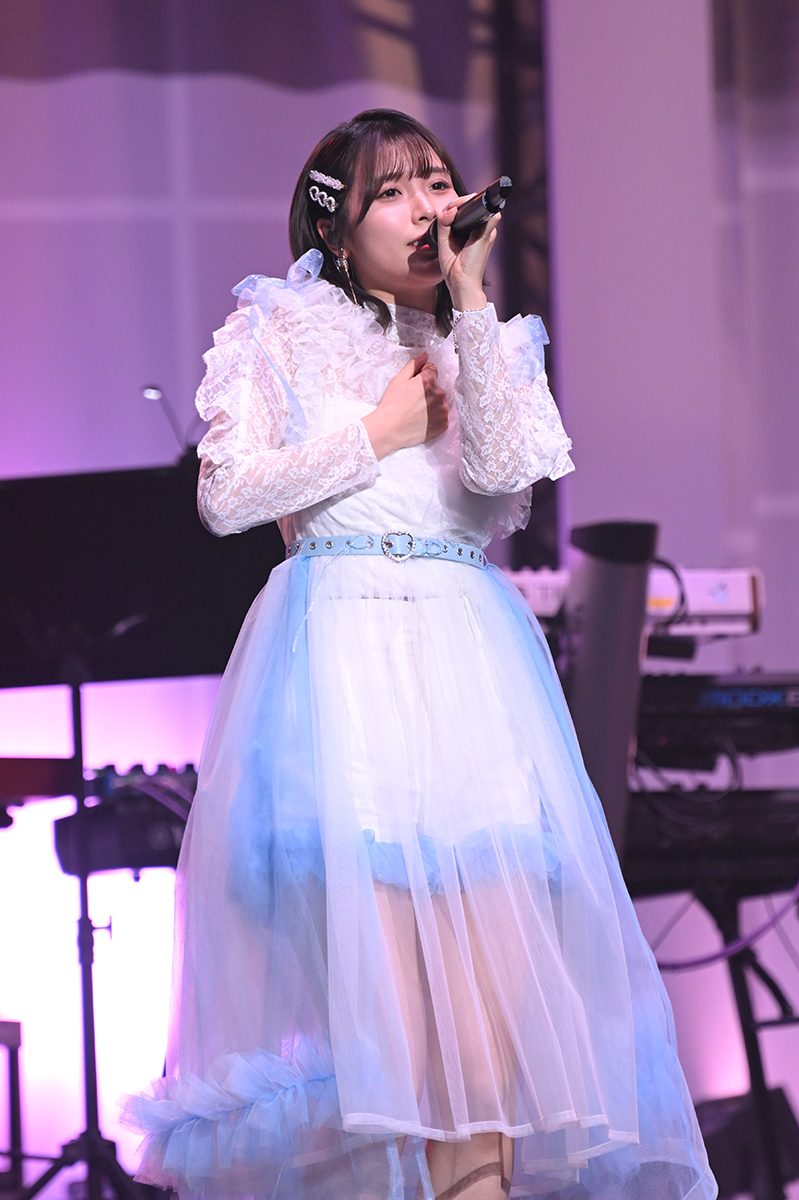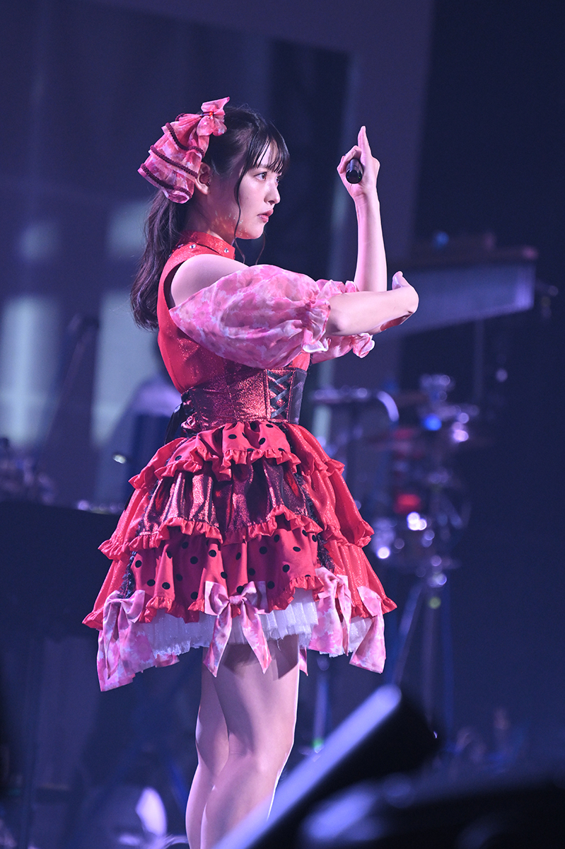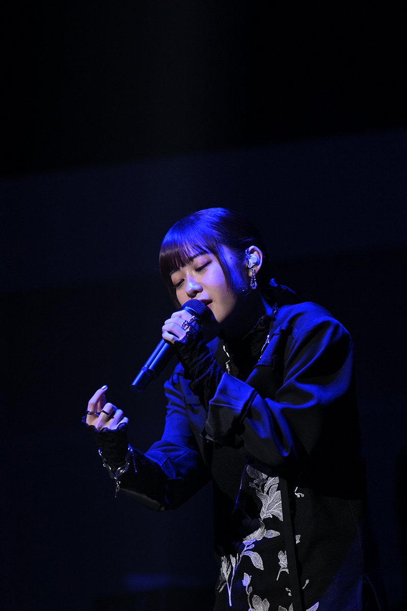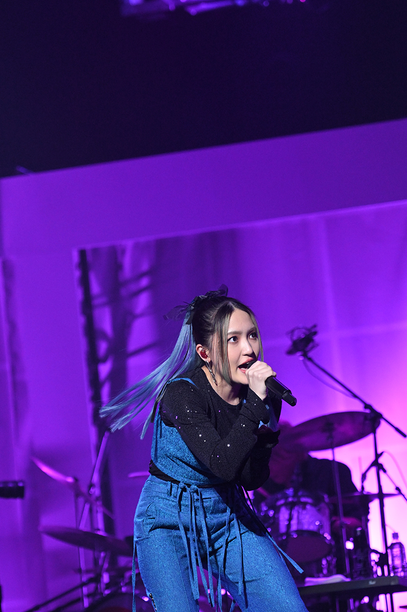 2 番手の Liyuu は、2019 年に中国・北京で行われた“リスアニ!LIVE BEIJING”、そして昨年のオン ラインライブ“リスアニ!LIVE XR World vol.01”に出演してきたが、日本武道館での“リスアニ!LIVE” には初登場。8 人のダンサーを引き連れた彼女は、まず TV アニメ『夫婦以上、恋人未満。』の OP テー マ「TRUE FOOL LOVE」で愛らしくポップに盛り上げると、さらに TV アニメ『100 万の命の上に俺は立っ ている』の ED テーマ「カルペ・ディエム」、そして JUVENILE×TeddyLoid が手がけたトロピカル風味の 「Endless Vacation 」を、レアなバンドアレンジで披露する。ラストは TAKU INOUE が提供した自身の アーティストデビュー曲「Magic Words」(TV アニメ『はてな☆イリュージョン』OP テーマ)で締め括り、彼 女らしい最新型のガールズポップを届けた。