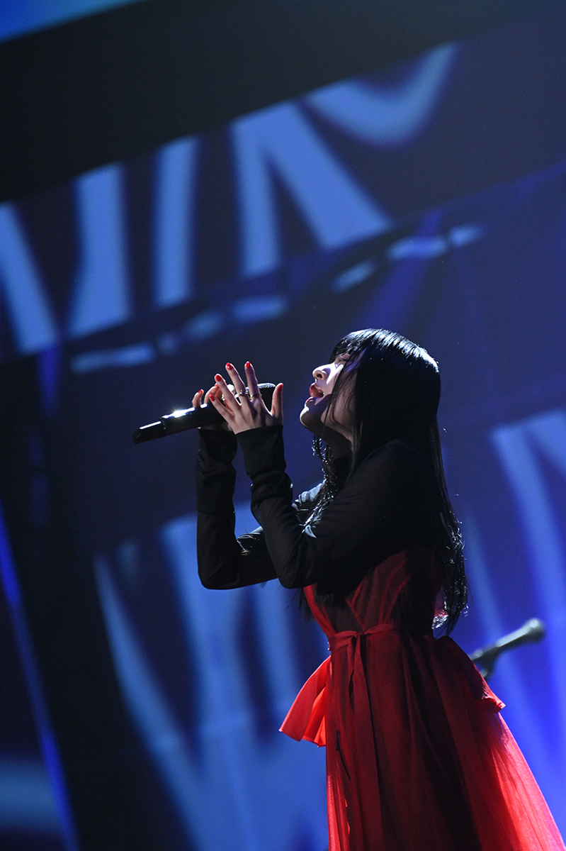 続いては 80 年代のシティーポップ~歌謡曲へのリスペクトを存分に感じさせる音楽性で、声優アーティス トのなかでも独自のポジションを築いている降幡 愛が登場。昨年の“リスアニ!LIVE”に出演予定だった が叶わず、今回が初出演となる。出だしからアーバンなデビュー曲「CITY」、TV アニメ『シティーハンター』の OP テーマとしてお馴染み小比類巻かほる「City Hunter ~愛よ消えないで~」のカバーと続けて独自の ラグジュアリーな世界観を広げると、後半戦では軽快なグルーヴが心地良い「ハネムーン」、冬シーズンにぴ ったりの透明感ある「真冬のシアーマインド」を歌唱。武道館をレトロでモダンな空間に染め上げて、昨年 の雪辱を晴らした。