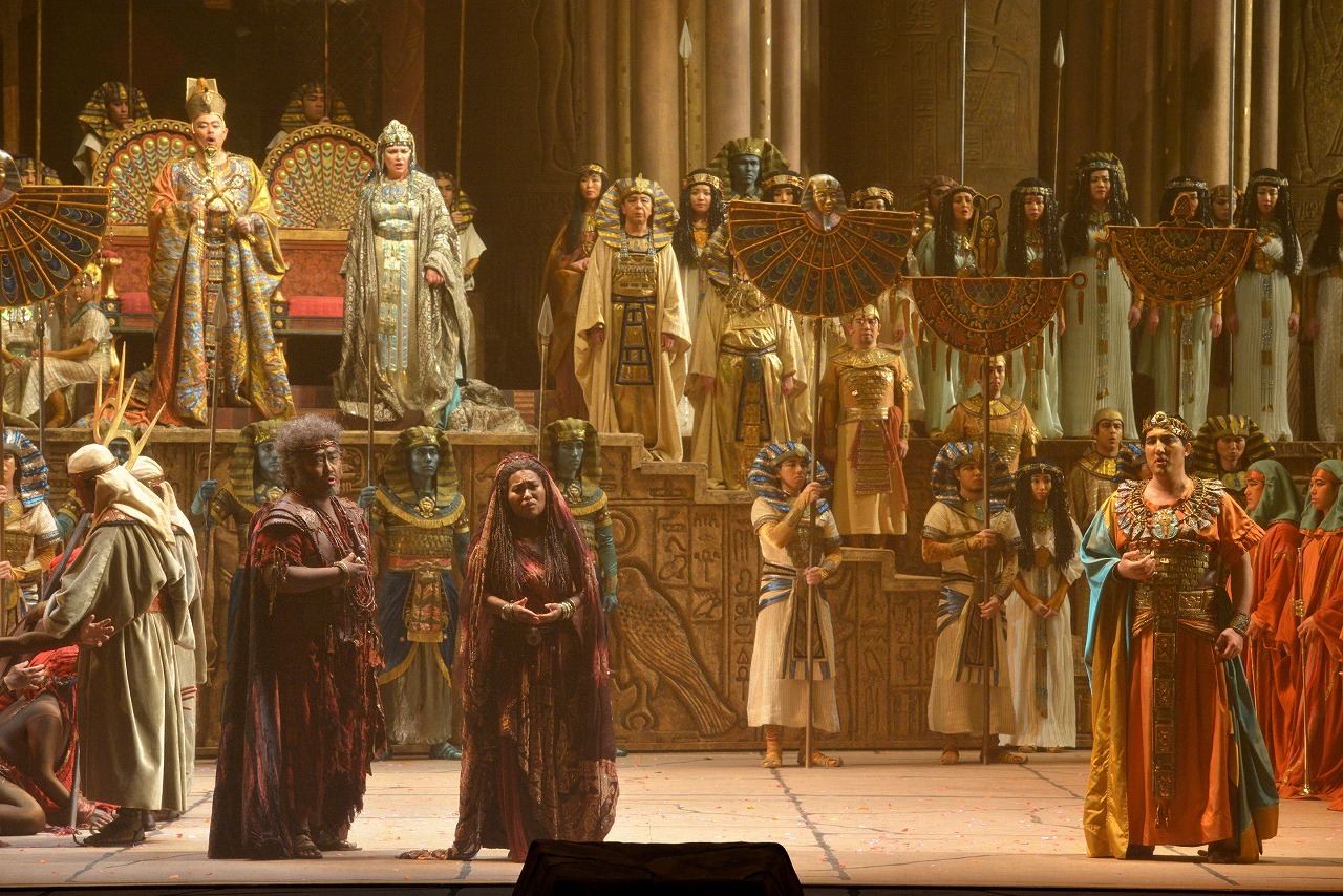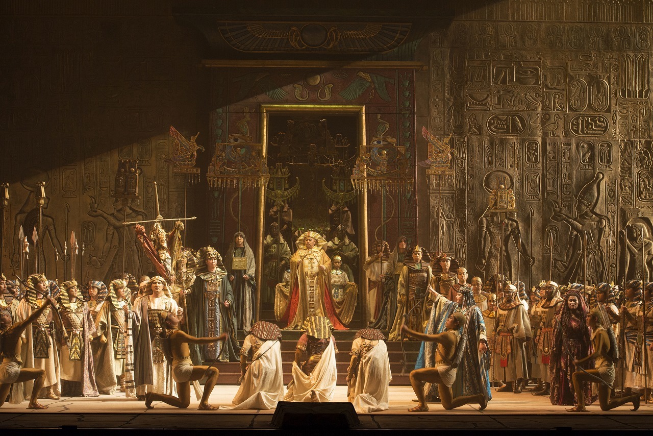 古代エジプト。エジプト軍の若い将軍ラダメスは、王女アムネリスに仕える奴隷アイーダを敵国エチオピアの王女と知らず、密かに愛し合っている。ラダメスは神託によってエチオピア征伐軍総司令官に任命される。人々は「勝ちて帰れ」と若者を激励するが、アイーダはラダメスへの愛と、祖国エチオピアへの想いの間で苦しむ。