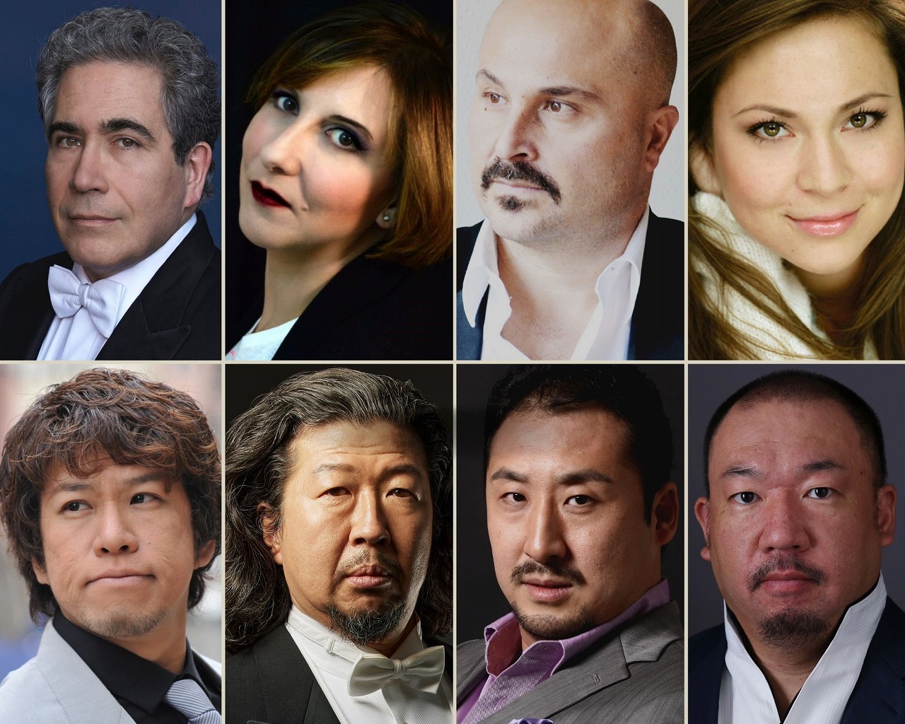 (上段左から)カルロ・リッツィ、セレーナ・ファルノッキア、ロベルト・アロニカ、アイリーン・ロバーツ(下段左から)須藤慎吾、妻屋秀和、村上敏明、伊藤貴之