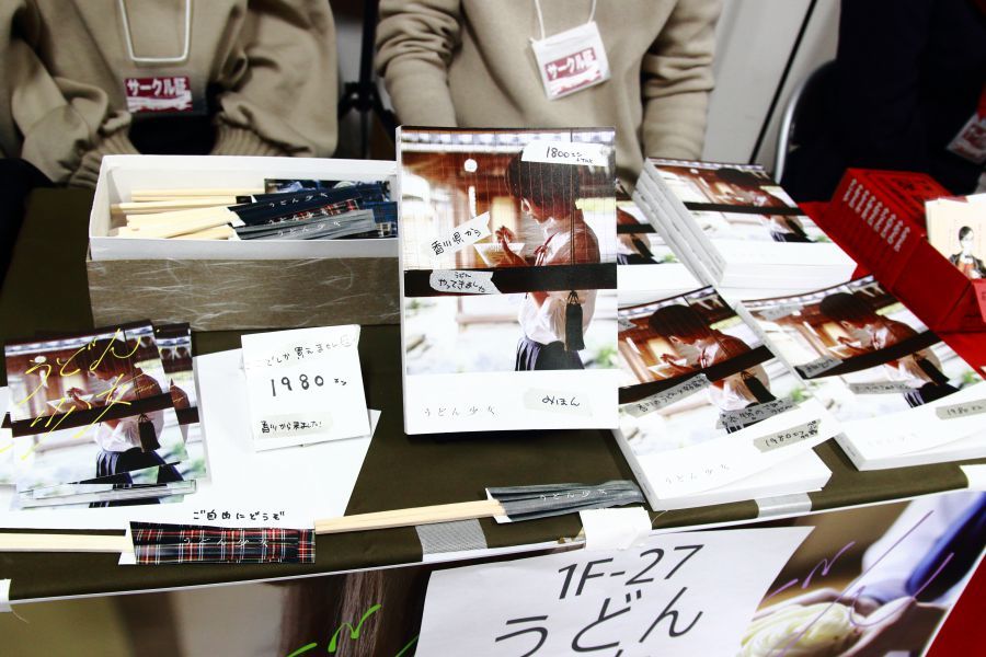 C-ROCK WORKでは、「うどん×プロレス」写真集『UDON IMPACT』の被写体を務めた松本藍佳から「コシがよくなるように一生懸命うどんと戦いました」という裏話を聞いた。別のフロアには、「青春のそばにうどん」をテーマにした写真集『うどん少女』のブースも。少女モデルは撮影時にやはり、足で踏んでコシを作ったそうだ。フェチ界隈でうどんが静かなブームだ。