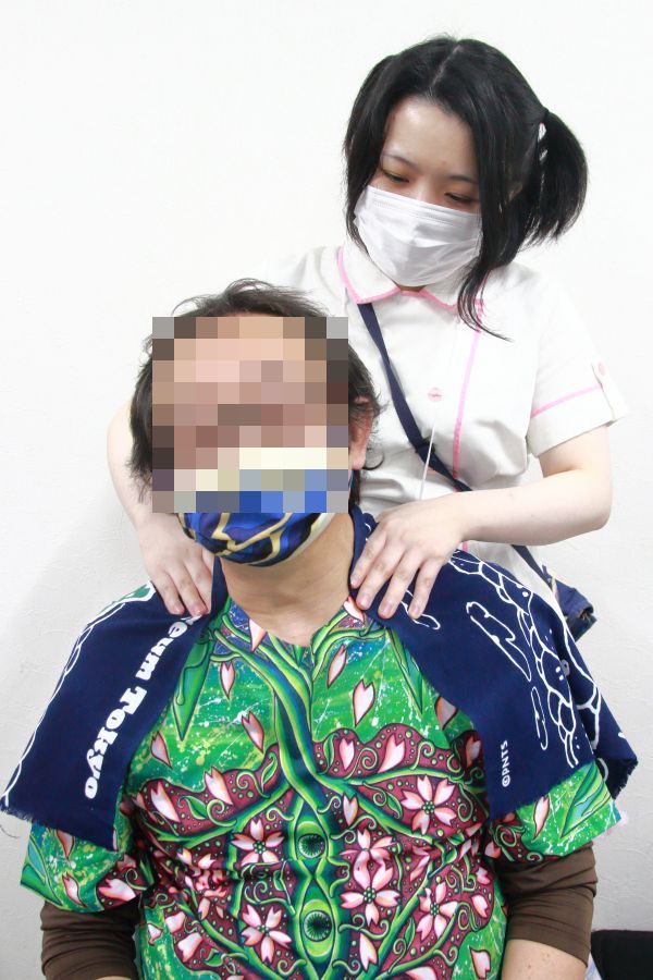鍼灸アイドル(ハリドル)のはちは鍼やあんまで不調気味の来場者を癒してた。施術の予約が途切れない盛況ぶりだが、「皆さんには感染対策にご協力いただき、窮屈な中でも譲り合ってくださいます」と感謝を示した。