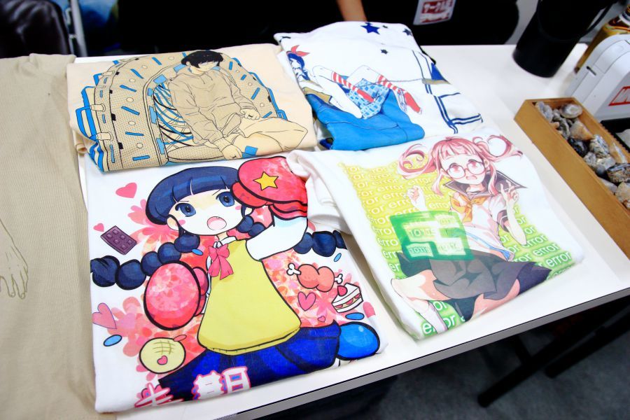 思春期マーブルはマンガ家とのコラボTシャツを特別価格で大放出。ハイレグに特化した東京要人にはレオタードなどのセクシー衣装が並んでいた。