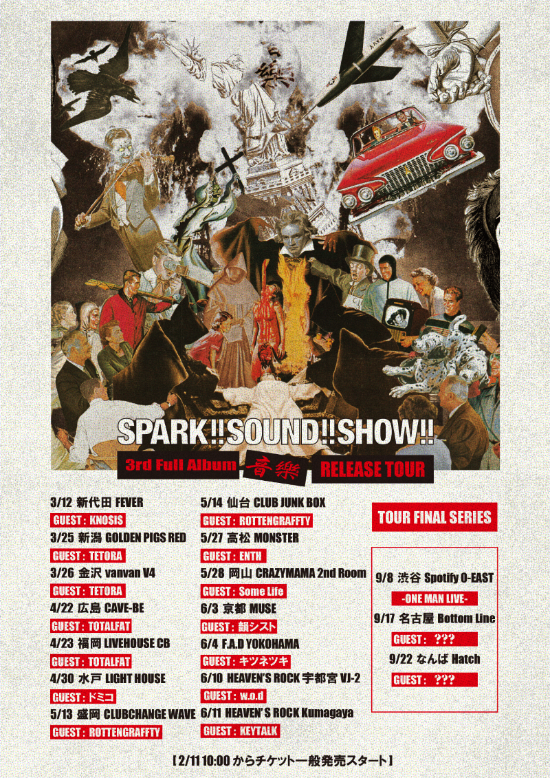 “スサシ”ことSPARK!!SOUND!!SHOW!!の3rd Full Album『音樂』リリースツアーのゲストが解禁された。