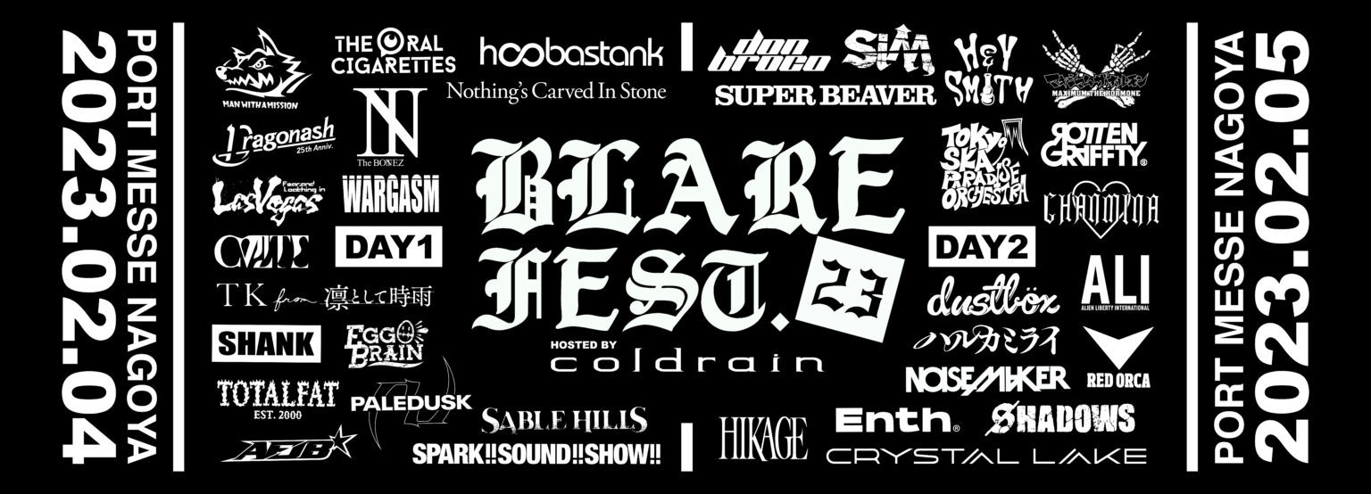 『BLARE FEST.2023』は2020年以来3年ぶりの開催で、海外からUSのロックバンドHoobastankやUK出身のオルタナティヴロックバンドDon Broco、ロックデュオWARGASMが招聘され、国内からはALI、AFJB、EGG BRAIN、ENTH、CVLTE、Crystal Lake、Sable Hills、The BONEZ、THE ORAL CIGARETTES、SiM、SHADOWS、SHANK、SUPER BEAVER、SPARK!!SOUND!!SHOW!!、dustbox、ちゃんみな、TK from 凛として時雨、TOKYO SKA PARADISE ORCHESTRA、TOTALFAT、Dragon Ash、Nothing's Carved In Stone、NOISEMAKER、ハルカミライ、HIKAGE、Fear, and Loathing in Las Vegas、HEY-SMITH、Paledusk、マキシマム ザ ホルモン、MAN WITH A MISSION、RED ORCA、ROTTENGRAFFTYらが出演。coldrainは両日出演となる。