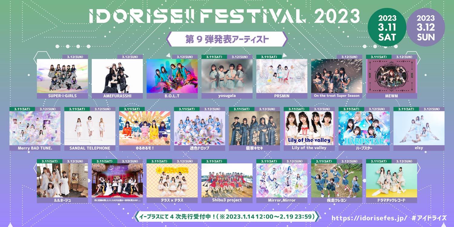 2023年3月11日(土)・12日(日)の2日間、東京・渋谷で開催される『IDORISE!! FESTIVAL 2023』の第9弾出演アーティストが発表された。