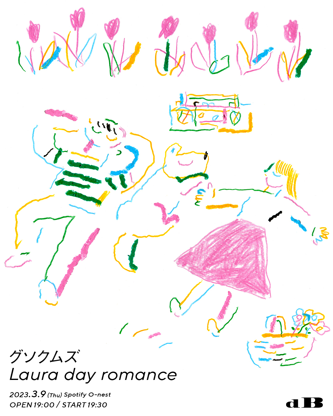 はっぴいえんどやシュガーベイブなどから色濃く影響を受け、日本のフォークロックをルーツとしながらも、独自の音楽性を切り拓く4人組バンド「グソクムズ」。そしてバックボーンにあるUKオルタナティブをベースに、温かみのある日本語ポップネスを織り交ぜる「Laura day romance」。