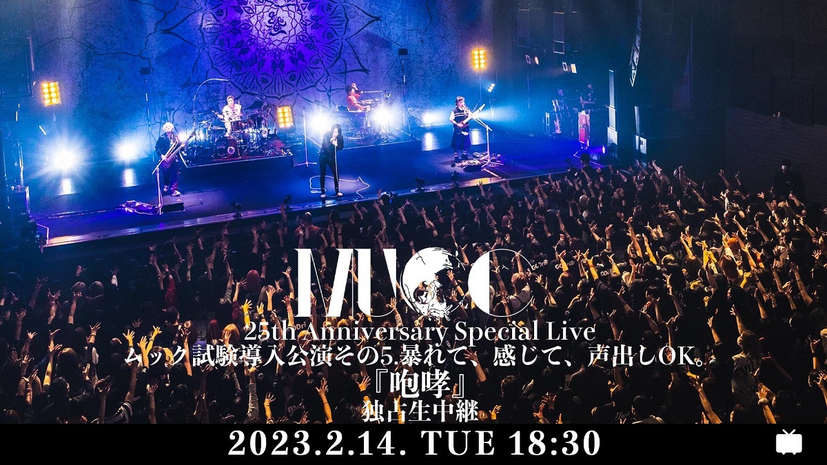 MUCCが2月14日に行うライブ『MUCC 25th Anniversary Special Liveムック試験導入公演その5.暴れて、感じて、声出しOK。『咆哮』』GORILLA HALL OSAKA』公演を、ニコニコ生放送で有料生配信することが発表された。。