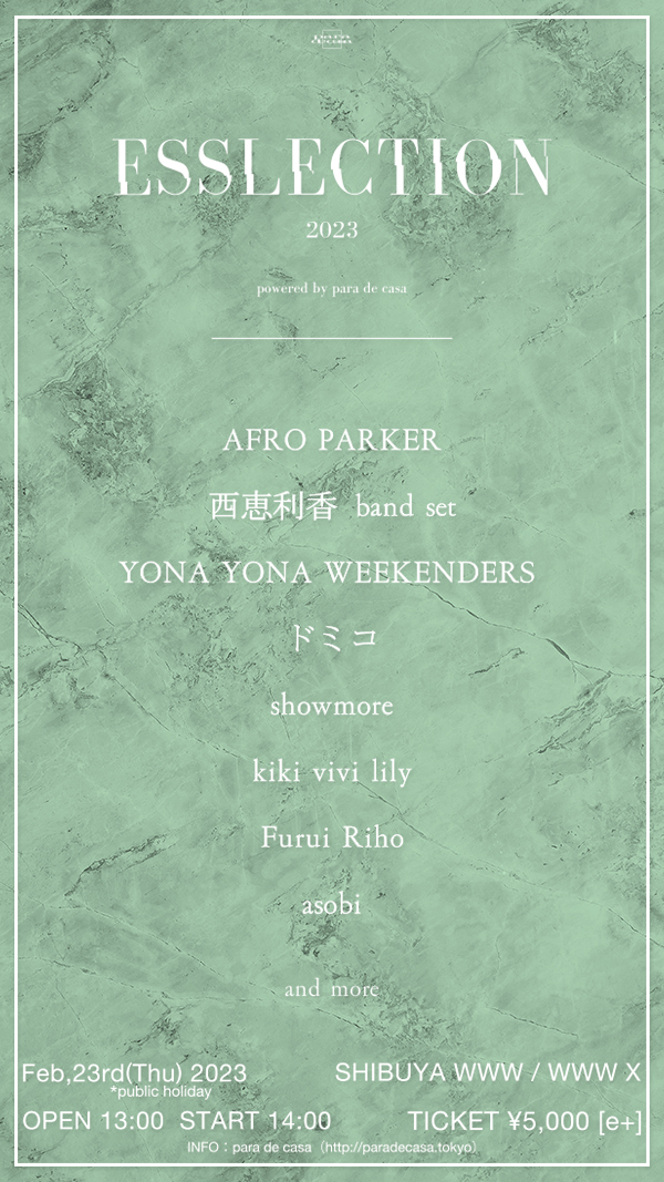 『ESSLECTION 2023』は、2月23日に SHIBUYA WWW / WWW Xにて開催。本日2月10日よりチケット一般販売がスタートする。