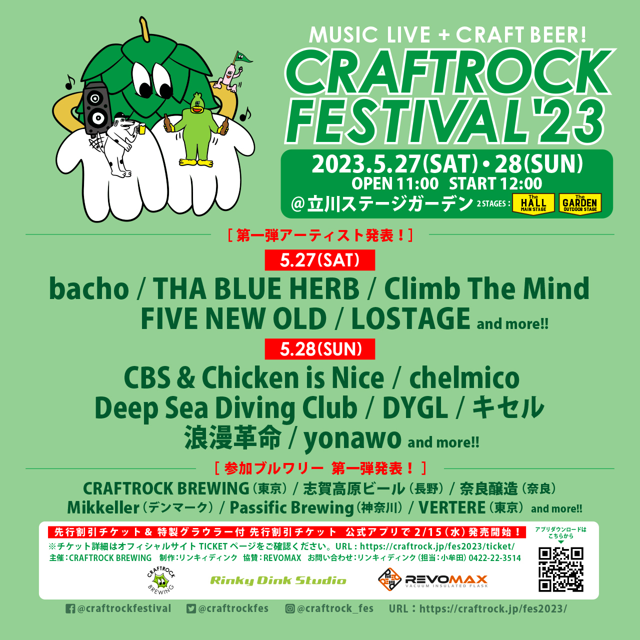 2023年5月27日(土)・28日(日)に立川STAGE GARDENにて開催される『CRAFTROCK FESTIVAL ’23』の第一弾出演アーティストが発表された。