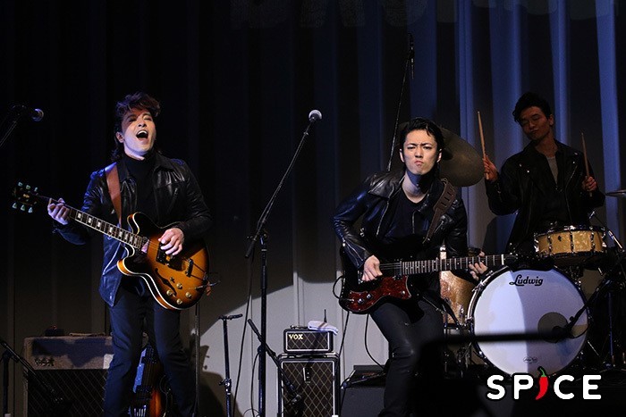 製作発表では、「Rock And Roll Music」「Love Me Tender」「Long Tall Sally」の3曲を披露。お互いにアイコンタクトをとり、楽しそうに演奏する5人から目が離せなくなる。初演から4年という歳月を感じさせない堂々とした演奏と歌唱、熱量たっぷりのパフォーマンスに、再演への期待がグッと高まった。