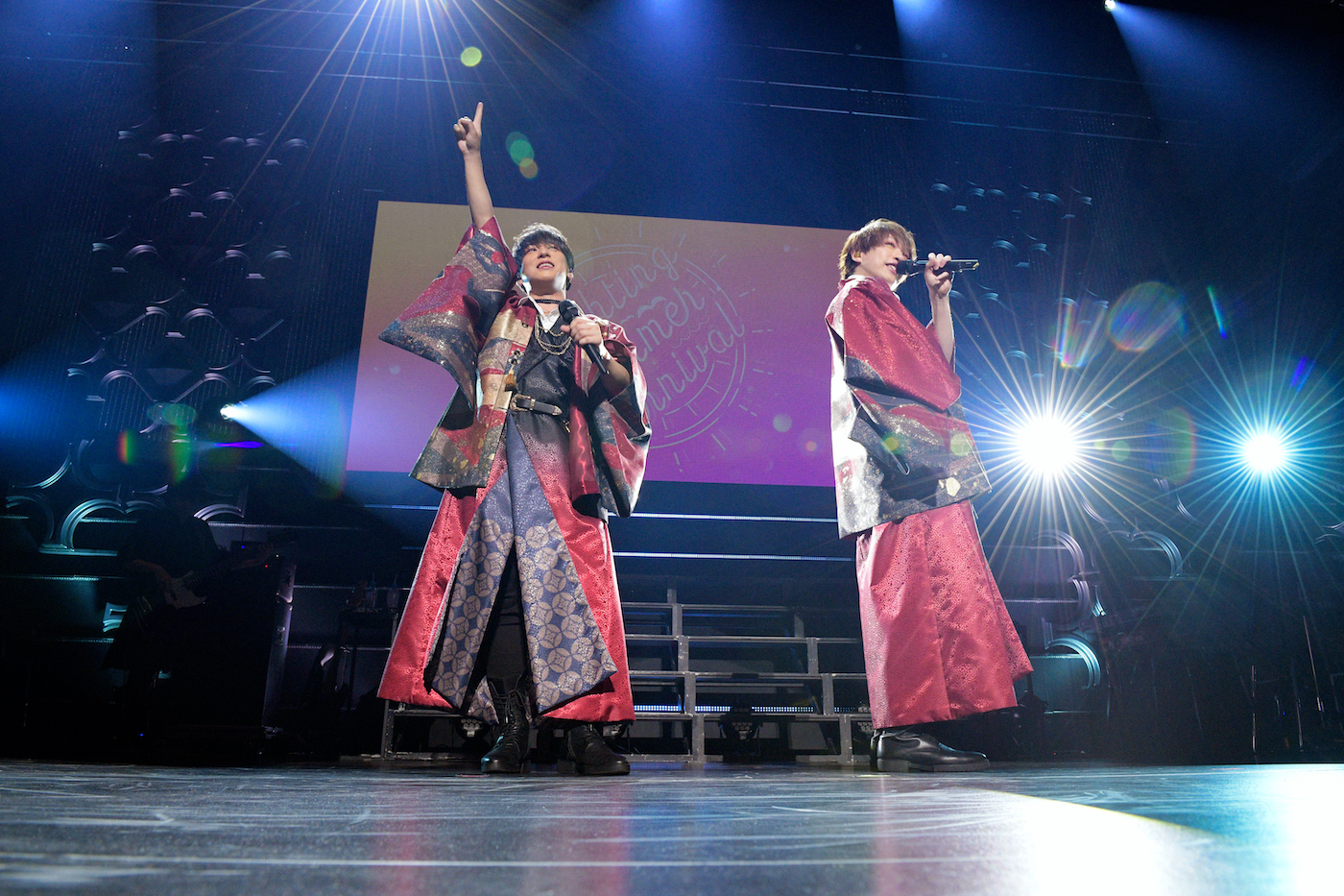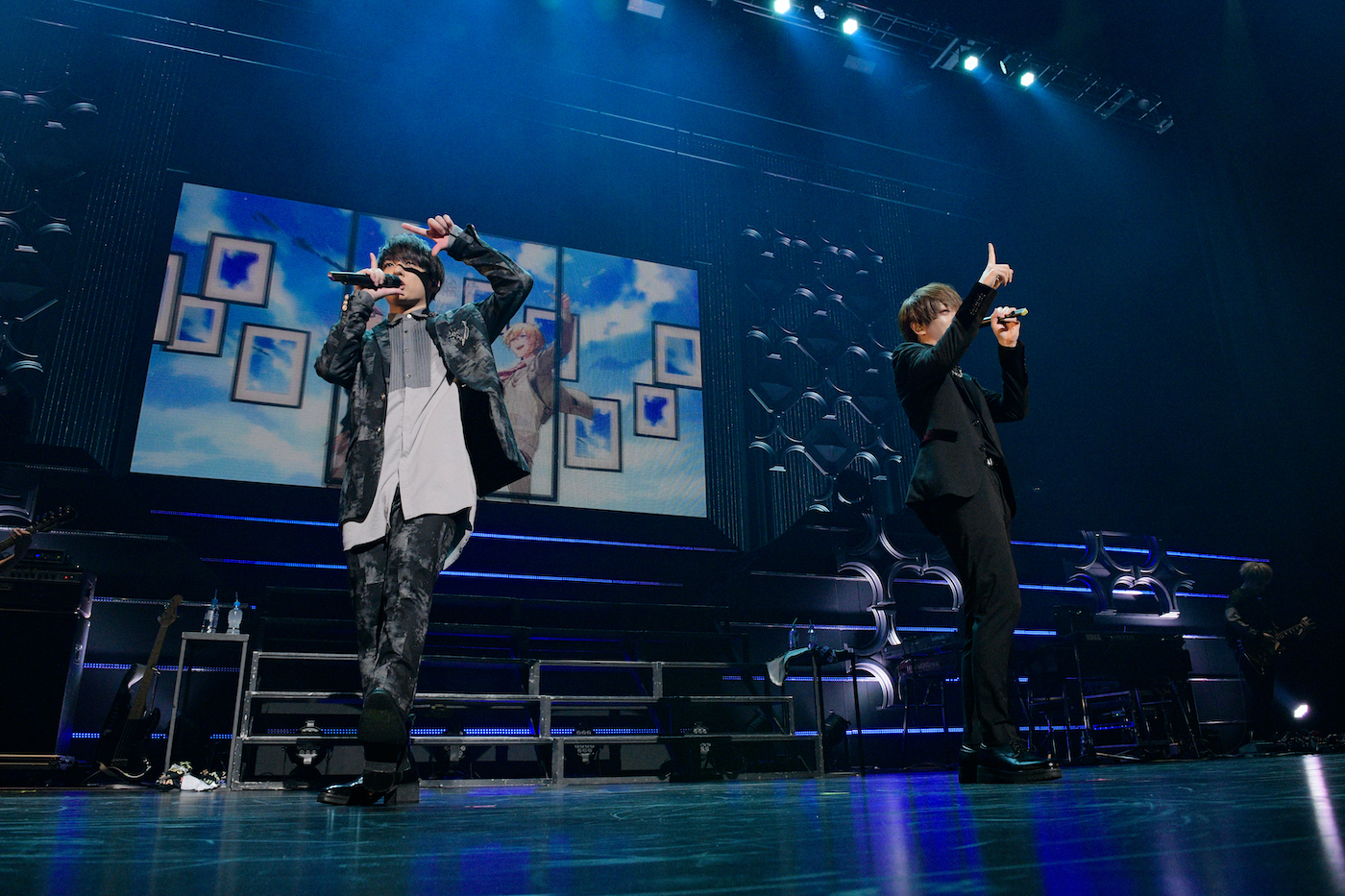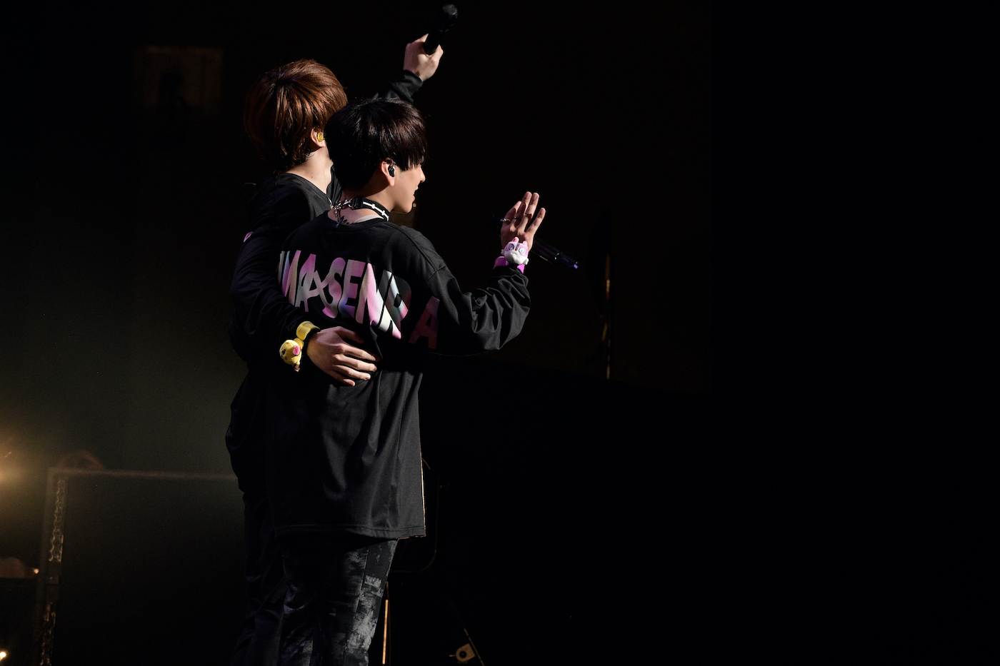 カジュアルな衣装にチェンジすると、<死んでも相棒なめんじゃねぇ!>でもしびれさせた「オルターエゴ」、艶っぽさが際立った「微笑、香り、君と僕を繋ぐ」に続き、センラが歌う「notebook love」、志麻が歌う「色恋」へ。お互いのソロ曲を交換して歌唱するなんて、反則級のファンサである。