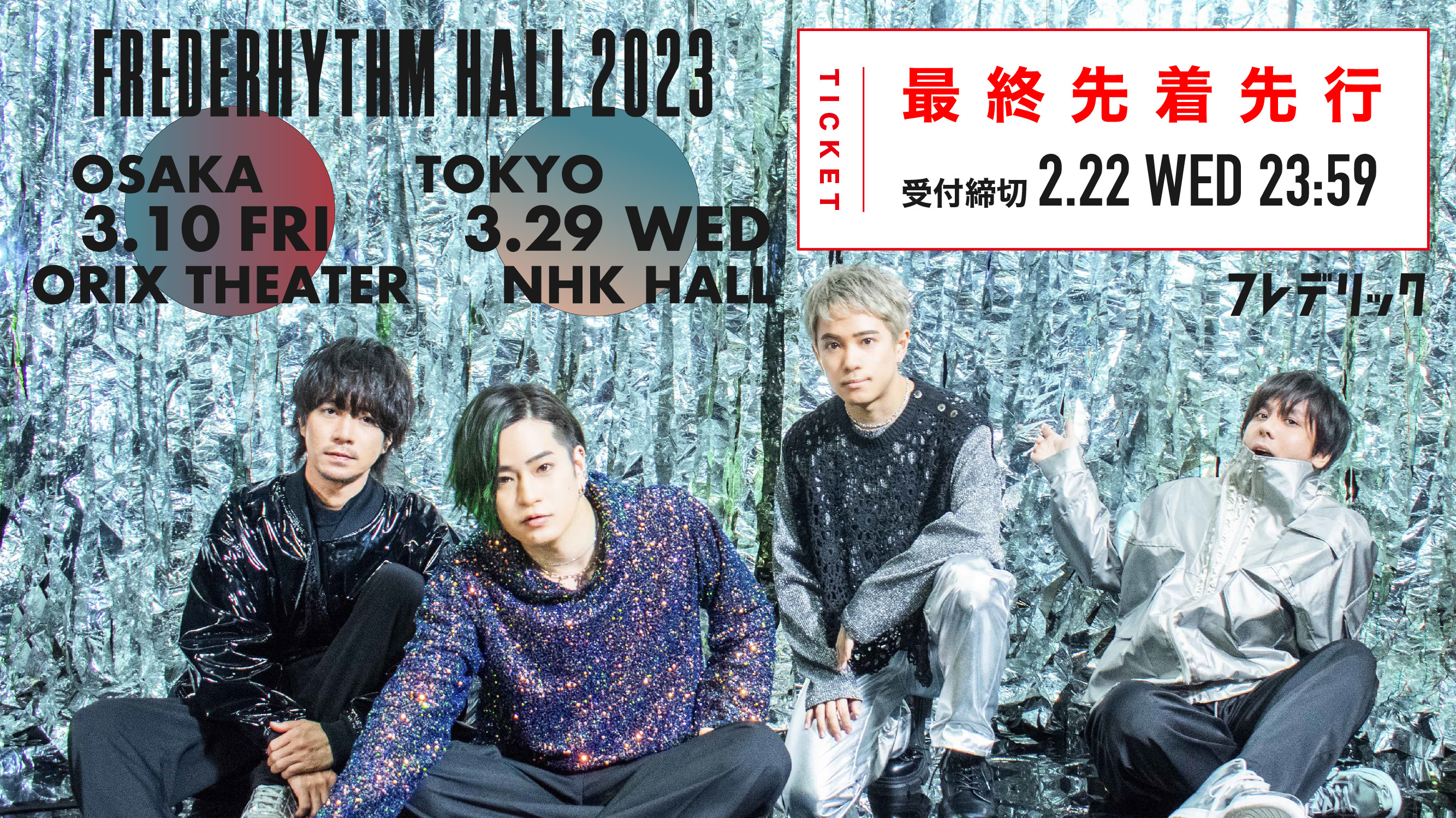また、3月に大阪と東京で行われるホールツアー『FREDERHYTHM HALL 2023』の一日限りのチケット受付もスタート。先着順となっているので早めにチェックしよう。