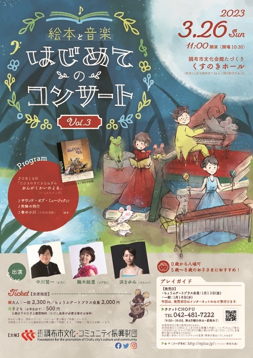 2023年3月26日(日)調布市文化会館たづくり くすのきホールにて『絵本と音楽 はじめてのコンサート Vol.3』が開催される。