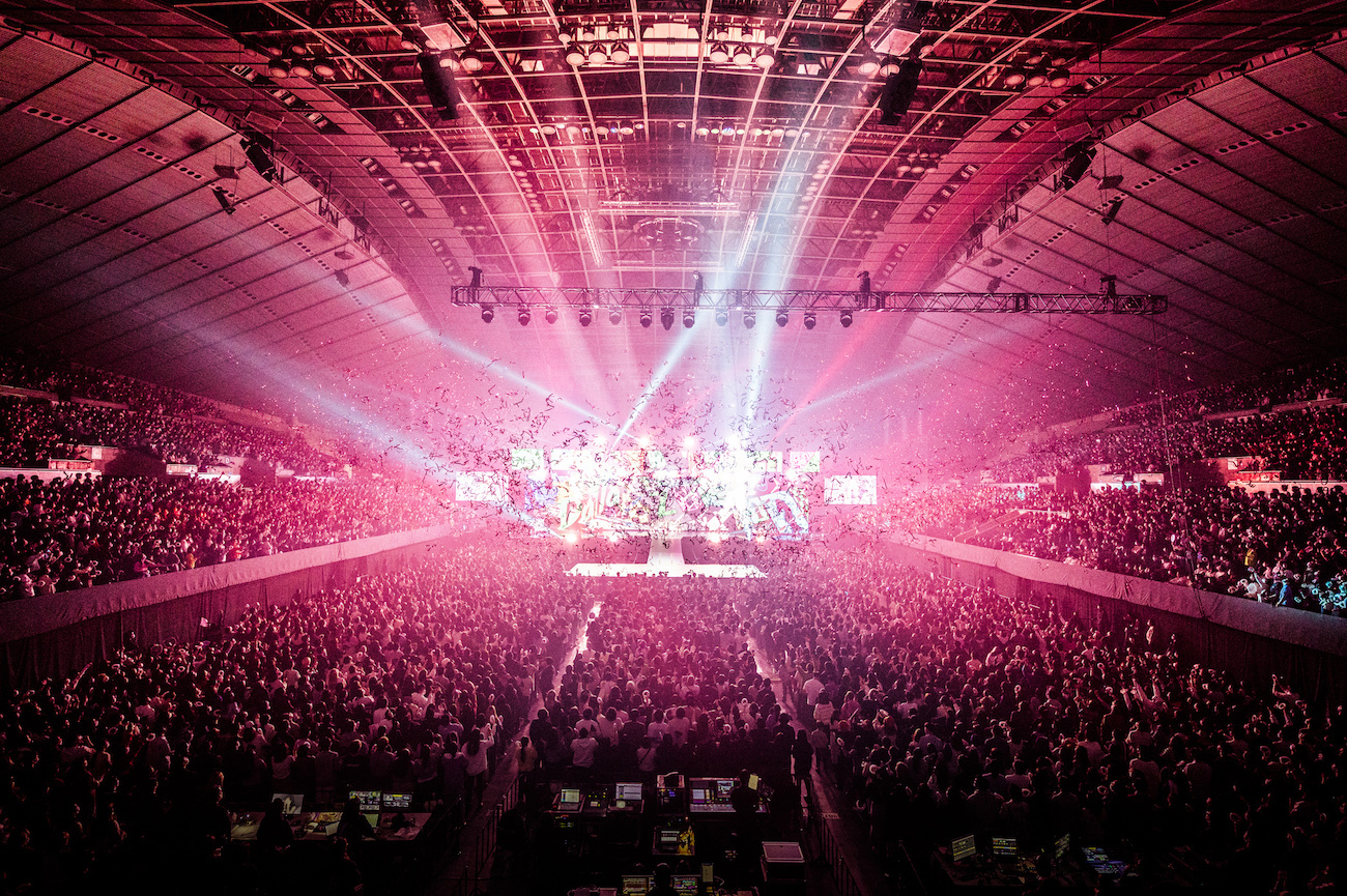 スクリーンが開きメンバーが登場し、会場に響き渡る大きな歓声と共に韓国アルバム5作品目のタイトル曲である「In the morning(ヨミ:イン ザ モーニング)」をロックテイストにアレンジした楽曲でスタート。巨大な王冠とチェスのセットがそびえたつステージが、ITZYの存在感・迫力をより引き立てた。