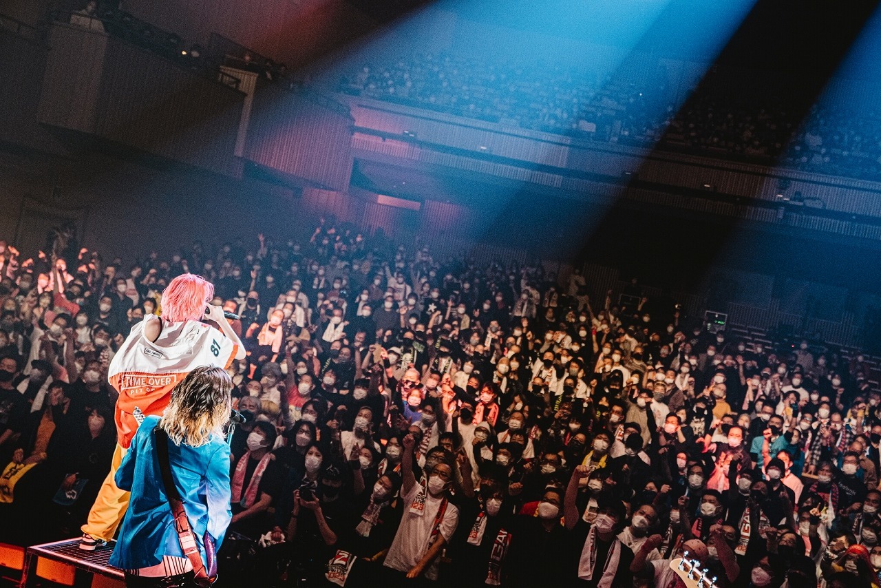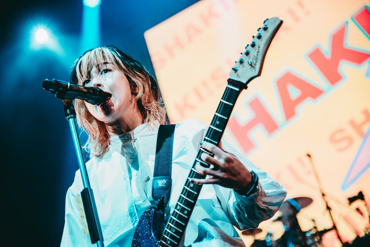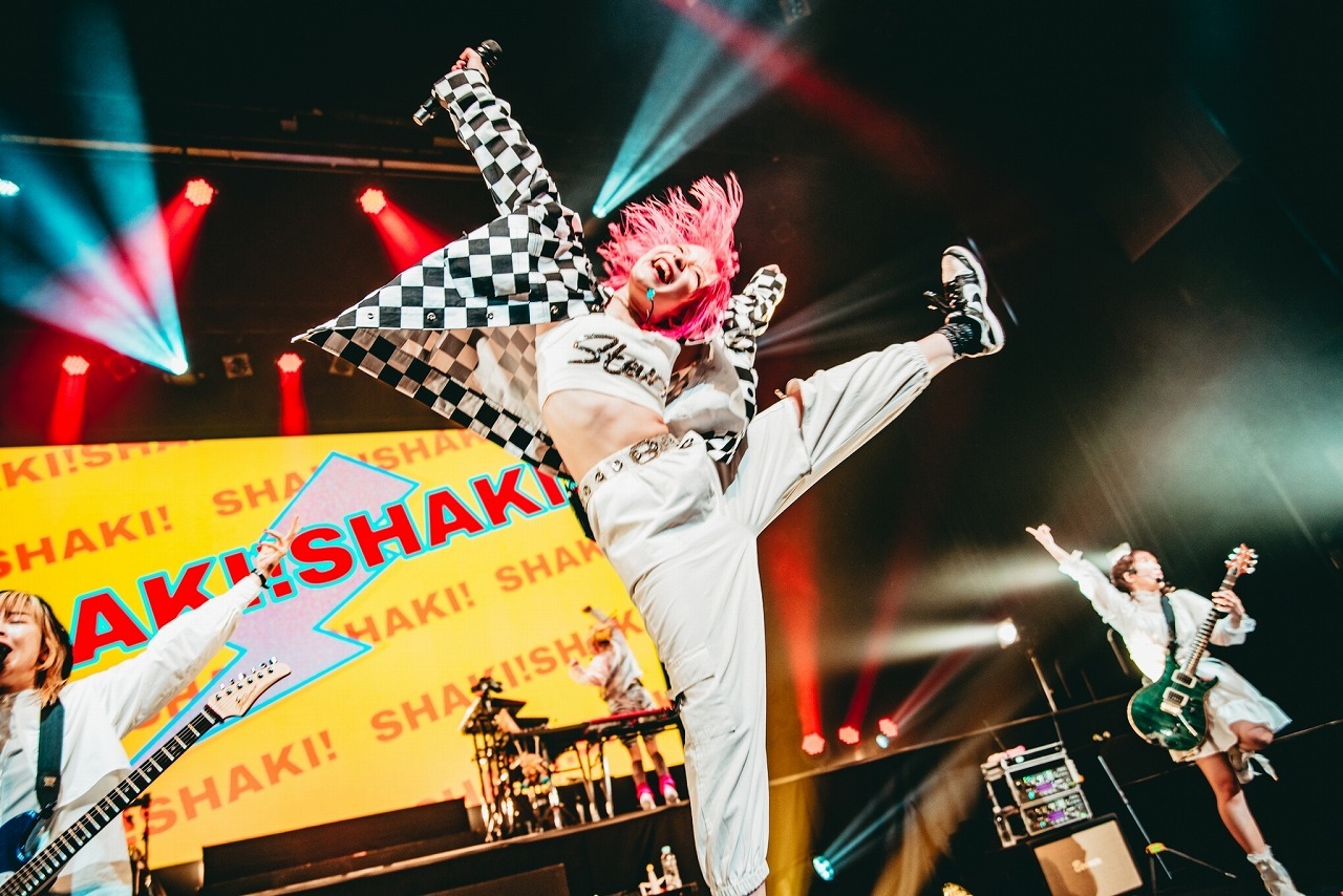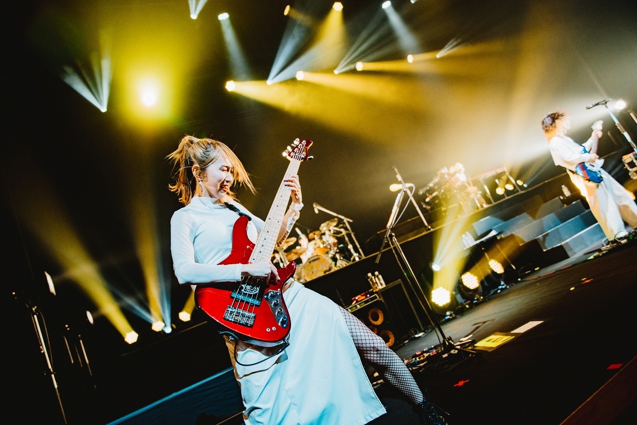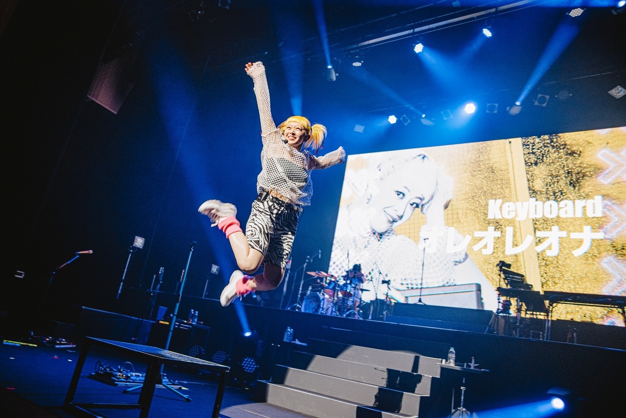 そして、KOGA曰く“優しい応援歌”こと新曲の熱唱系バラード「ロンリーマート」でいったん場内の空気を落ち着かせ、オーラスは激アツのタオルぶん回し曲「ダンガンビート」。メンバーがステージを行き来し、入り乱れての大団円に。yuriも“愛くるしいギャップ”とも言える屈託ないの笑顔でダイナミックなビートを繰り出し、KOGAの超絶スラップをはじめ、他のメンバーのテクニカルなプレイを後押しし、バンドの持つ爆発力を何倍も高めているのも特筆すべきところだろう。最後は客席をバックに記念撮影し、オレオが「今日はみんなの声が聞けて、顔が見れて嬉しかったです」と場を締め、6人でエンジンを組んで(アンジーはすでに泣き顔)、本公演は幕を下ろした。