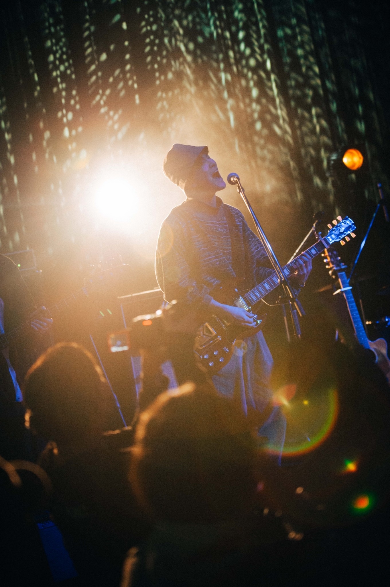まずは、ゲストアクトのYAJICO GIRLがステージに登場し、爽やかなゴスペルポップ「Better」でライブがスタート。ほの暗いムーディーな照明の中、クセになる譜割りやリズムでアクセントを付けながら、四方颯人(Vo)が演奏に合わせて気持ちよさそうに歌う。バンドサウンドに同期を溶け込ませるのもうまい。キラキラとしたメロディが舞う「雑談」になれば、武志綜真(Ba)と古谷駿(Dr)が軽快なビートを刻み、吉見和起(Gu)はトロピカルな音色を繰り出し、榎本陸(Gu)が弾くアコギのカッティングも映えるなど、ダンサブルなノリがいっそう高まっていく。