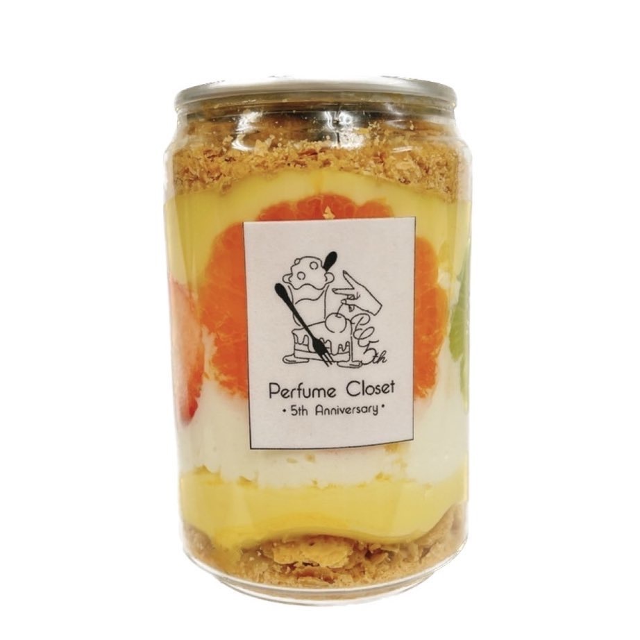 サクサクのパイ生地と甘さ控えめ生クリームにカスタード、Perfumeの3人をイメージした3種の春果実(いちご・みかん・キウイ)を透明缶に詰め込んだ、見た目もカワイイ期間限定ミルフィーユ缶となっている。