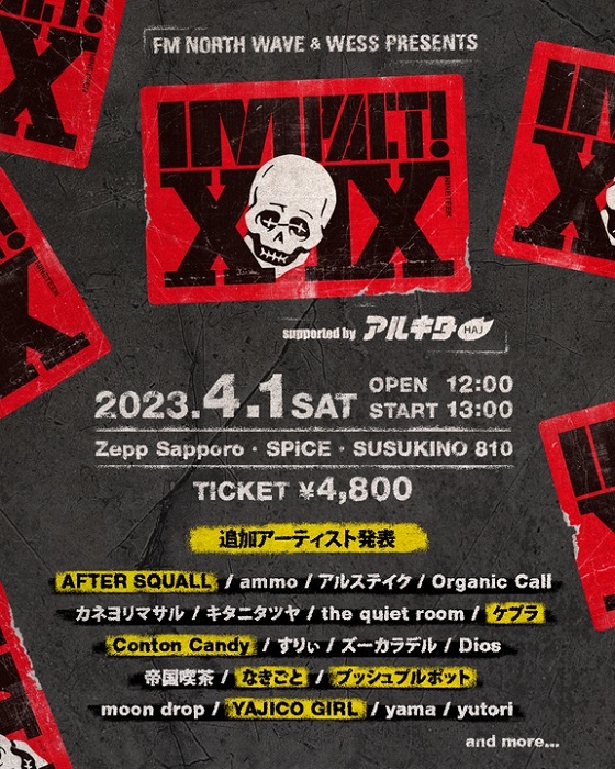 2023年4月1日(土)に札幌市内のライブハウス3会場で開催するサーキットイベント『FM NORTH WAVE & WESS PRESENTS IMPACT ! XIX 』。第三弾出演アーティストとして、新たに6組の出演が決定した。