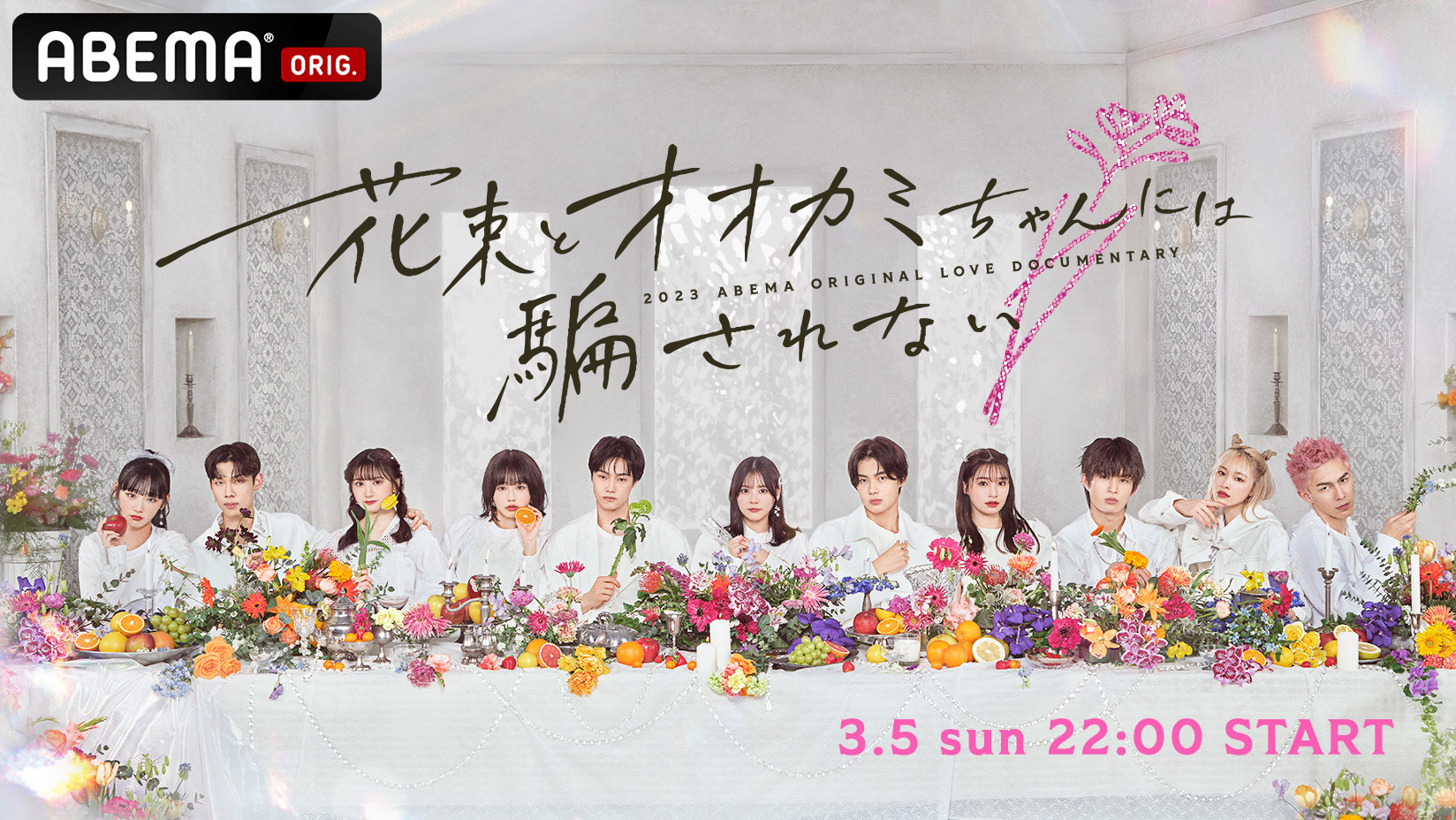 3月5日(日)22時から放送開始となる『花束とオオカミちゃんには騙されない』は、「ABEMA」開局当初より人気を誇るオリジナル恋愛番組『オオカミには騙されない』シリーズの最新作。本シリーズは、参加メンバーの中に恋をしてはいけない役割を与えられた「“嘘つき”オオカミ」が潜むルールが採用されており、それゆえに毎シーズンで予測不能な恋の駆け引きや筋書きのない心揺さぶるドラマが生まれ、幅広い年代に人気を博している。