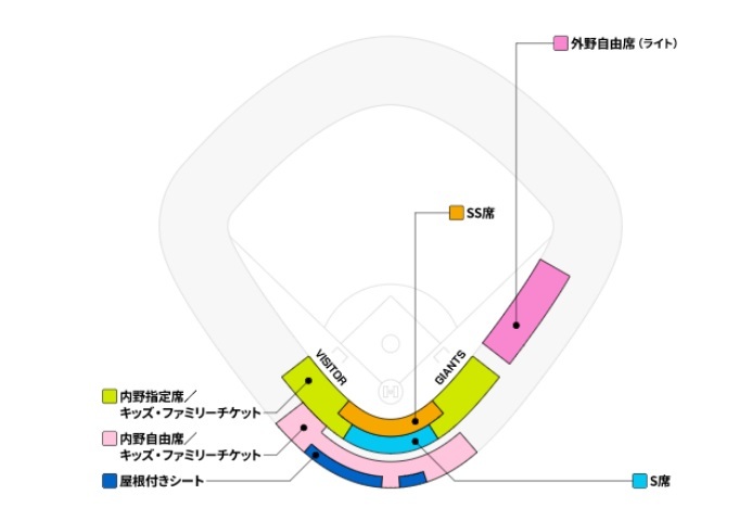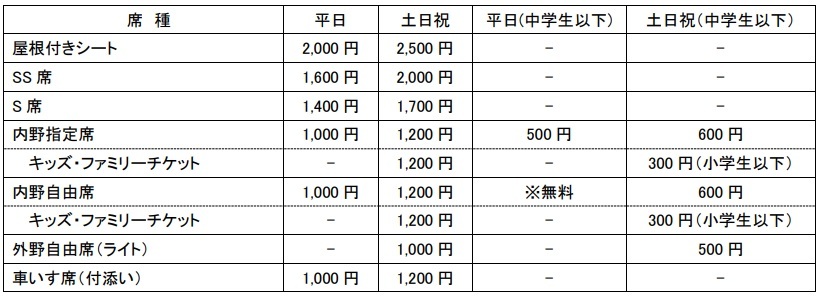 3月18日(土)の開幕戦は全席指定席となる。それ以外の試合では、内野席の一部と全外野席を自由席として販売。エリア内の好きな席から観戦できる。