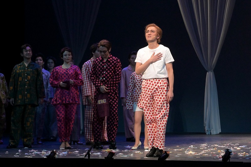 そうですね。1950年代アメリカを再現したとてもカラフルでポップな衣装でした。僕自身は主役ですが工場長という役回りなので、最後のパジャマスタイル以外は、ジャケット・スーツの比較的固い衣装だったのですが、全体としてはすごくカラフルで視覚的にも楽しめる舞台だったと思います。