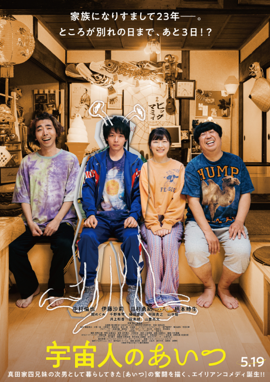 また、予告編では、氣志團による書き下ろし主題歌「MY SWEET ALIEN」が流れる中、中村倫也演じる日出男が、自身が“土星人”であることを告白する場面や、地球を離れるまでの3日間を過ごす様子が切り取られている。後半には、日出男が主題歌をバックに海岸沿いを疾走する姿など、一家との別れに向けた展開も。ポスタービジュアルでは、「家族になりすまして23年―。ところが家族と離れる日まで、あと3日。」とのキャッチコピーとともに、日出男が家族写真に収まる姿がポップに写し出されている。