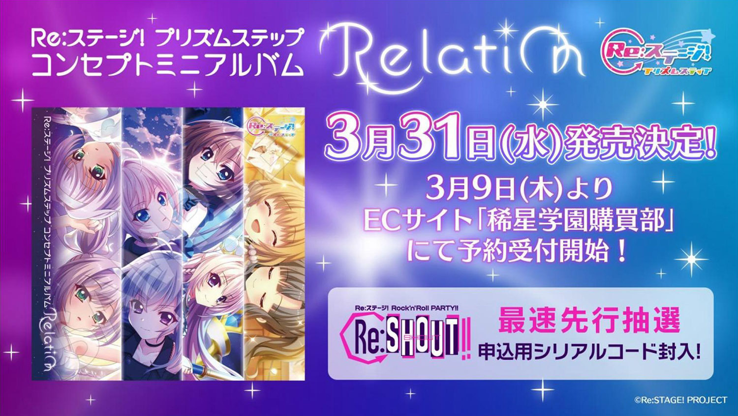さらに『Re ステージ! プリズムステップ』のコンセプトミニアルバムが3月31日(金)に発売されることも発表された。公式ECサイト「稀星学園購買部」にて3月9日(木)より予約受付予定。