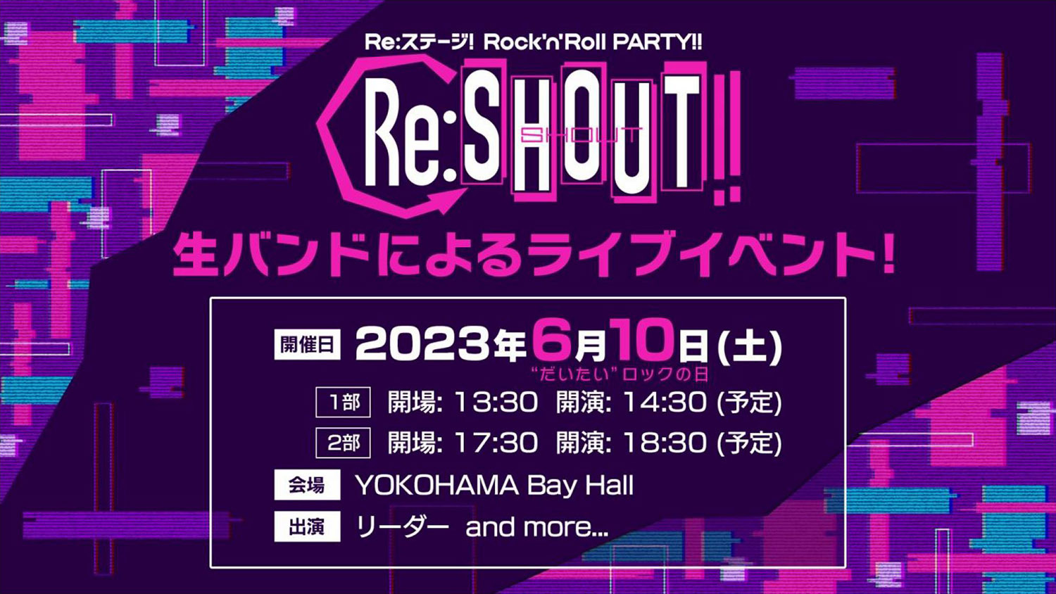女子中学生アイドルを描き、小説、ゲーム、アニメなどをまたいだメディアミックス作品として人気を集める『Re:ステージ!』の次なるライブイベントとして、2023年6月10日(土)にYOKOHAMA Bay Hallで『Re:ステージ! Rock’n’Roll PARTY!! ~Re:SHOUT!!~』の開催が発表された。