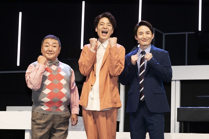 見どころを聞かれると、福田は「心温まる、とても素晴らしい小説を舞台化しているので、小説の世界をどう表現するかがひとつの見どころです。そうなると小説を読んでからこなくてはと思うかもしれないですが、舞台を見てから小説を読んでも面白い。小説を読んでから舞台を見ても面白い。“小説サンドイッチ”です」と笑いを誘い、浜中は「まだ前半までしかできていないので、ゲネプロまでの15分間で後半を作っていくのでどうなるか。もしかしたら間に合わないかも……。後半が出来上がっていたら観ていただければ」と謎のアピールを口にする。 それを見ていた深沢は「本当に自由だね。 嘘八百言っていて、本当にいいの? 大丈夫かな」と苦笑いを浮かべながら、「原作の村山さんは大学の後輩だったんです。OBとして出向いていたので、実は歌の指導をしたこともありました。そんな人から仕事をいただいたと思ってドキドキしていますが、頑張りたいと思います」と話した。