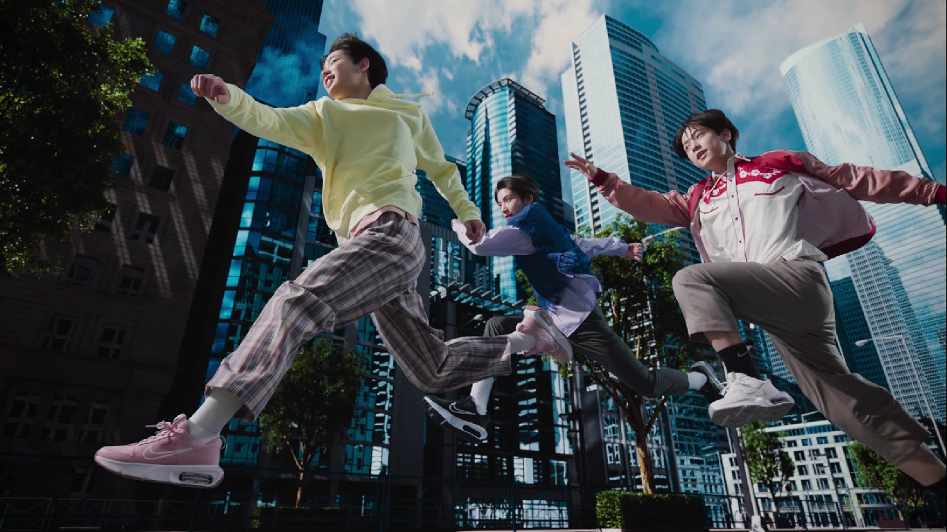 本CMは、街を駆け巡る&TEAMのメンバーが、思わず空まで駆け上がるようなAIR MAXの推進力を表現し、この春に前に進もうとする人々を応援するメッセージを込めたたストーリー。街を駆け巡るシーンの撮影では、メンバー同士で声を掛け合いながらAIR MAXを履いてジャンプをしたり、空まで駆け上がる瞬間を表現するために、JOは人生初ワイヤーアクションにチャレンジした。また、ジャンプシーンやワイヤーアクションだけではなく、履き心地がもたらす自信や心地よさを表現した彼らの表情も合わせて注目だ。