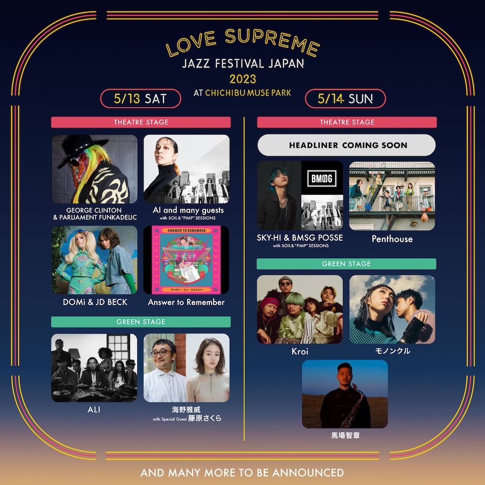 2023年5月13日(土)・5月14日(日)に秩父ミューズパークにて2回目の開催が決定した『LOVE SUPREME JAZZ FESTIVAL JAPAN』の第3弾出演アーティストが発表となった。
