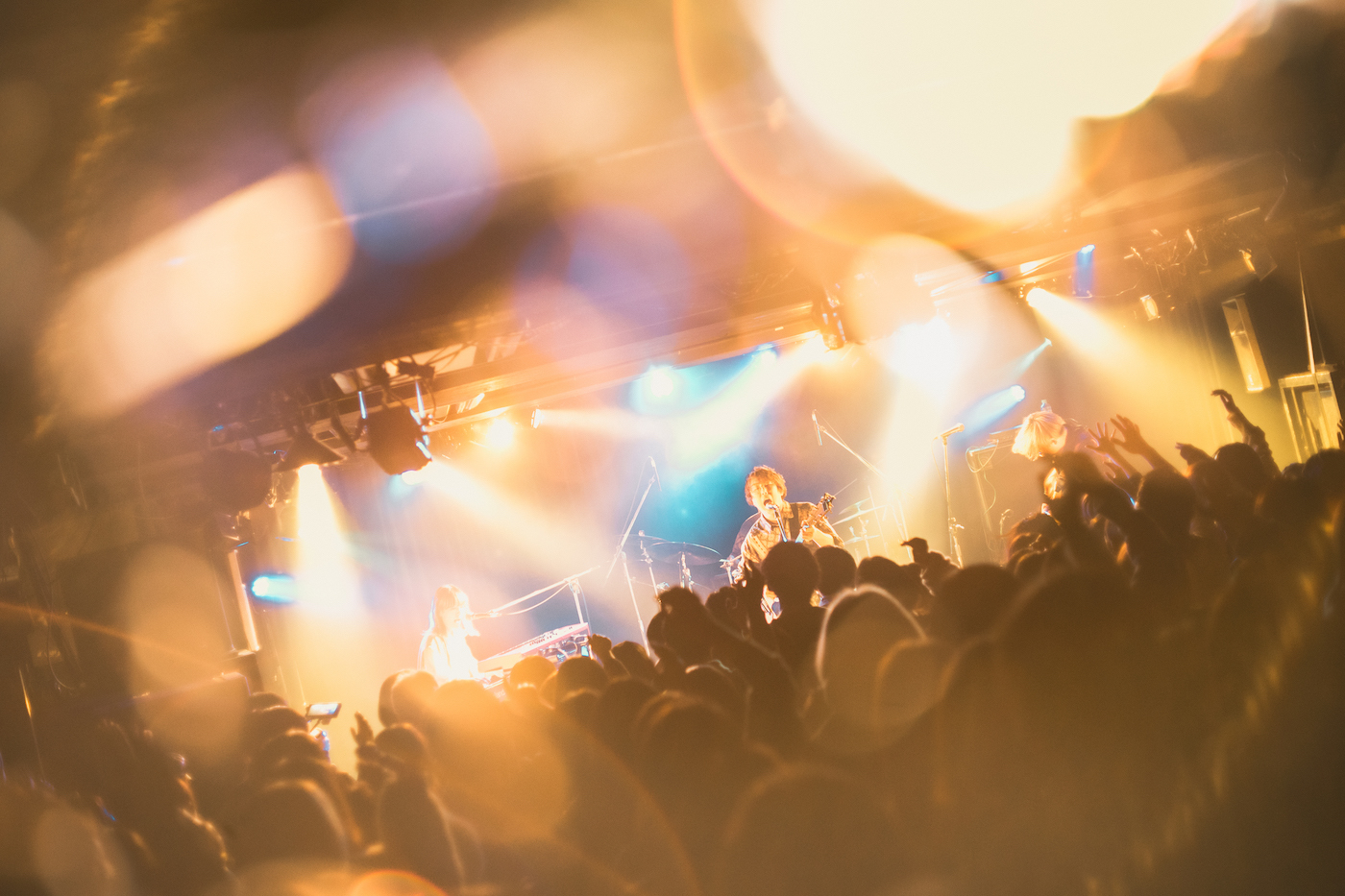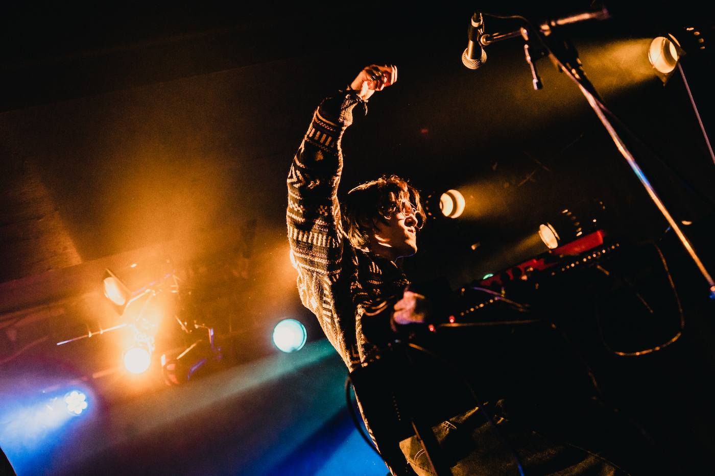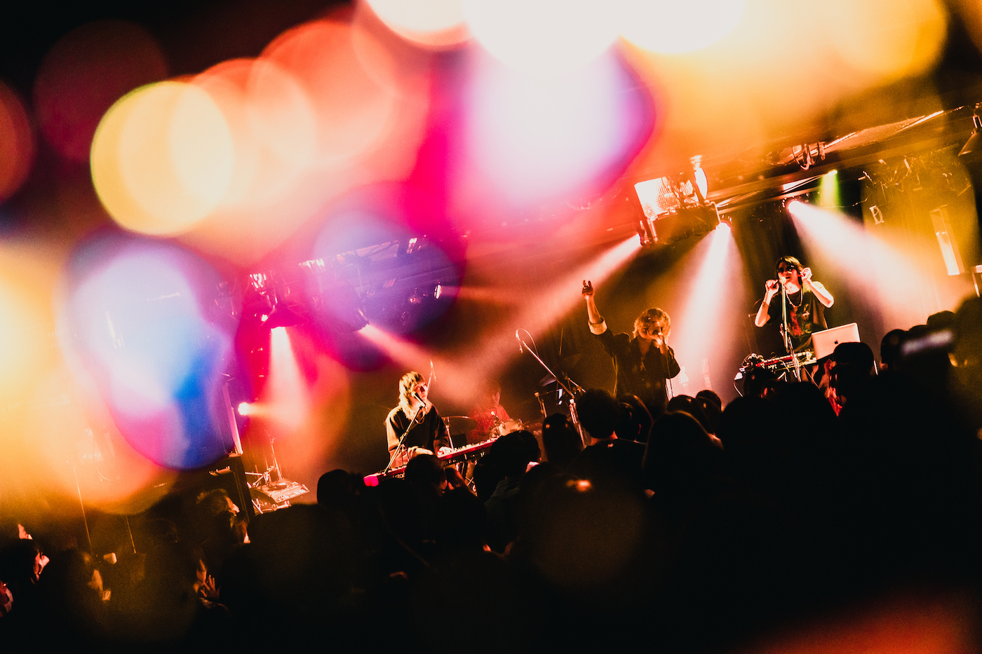 トップバッターを務めたDannie Mayは、「玄ノ歌」でライブスタート。“新感覚の極上ボーカルワークバンド”というキャッチの通り、マサ、田中タリラ、Yunoの3人は、個性の際立った三声を絡ませながら、ギラギラと怪しげに輝くダンスナンバーでフロアを激しく揺らしていく。この日のMCによると、彼らの出演が発表された時点ですでにチケット残小──つまり、彼らを目当てにチケットを購入した観客が少ない状況だったそうなのだが、オーディエンスの心を掴むスピードがとにかく早かった。