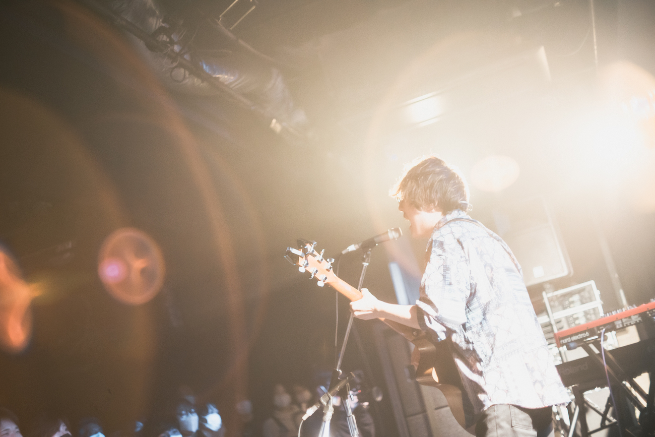 乱暴に言ってしまうと、とても泥臭い。それがレトロリロンであり、涼音が書く歌詞だ。聴いてくれた人を、あるいは自分自身を鼓舞するように、ときに力強く、ときに優しく、彼は歌をフロアに投げかけていく。なかでも強く胸を打たれたのが、美しいアコースティックギターのアルペジオから始まった「深夜6時」だった。失意、後悔、苛立ちといったネガティヴな感情に苛まれ、眠れない夜を過ごしているのに、素知らぬ顔で昇ってくる朝日を憂いながらも、それでもその眩い光が、少しだけ気持ちを軽くしてくれるような、なんだかちょっとだけ世界が美しく、悪くないものに見えてくるような──。そんな温かさに満ちていた。途中、込み上げてくる思いに言葉を詰まらせながらも歌を届けていた涼音は、曲を終えた後「なんか、グワーッと来て、ポカーンって感じになったなぁ……」と、感慨深そうに話していた。