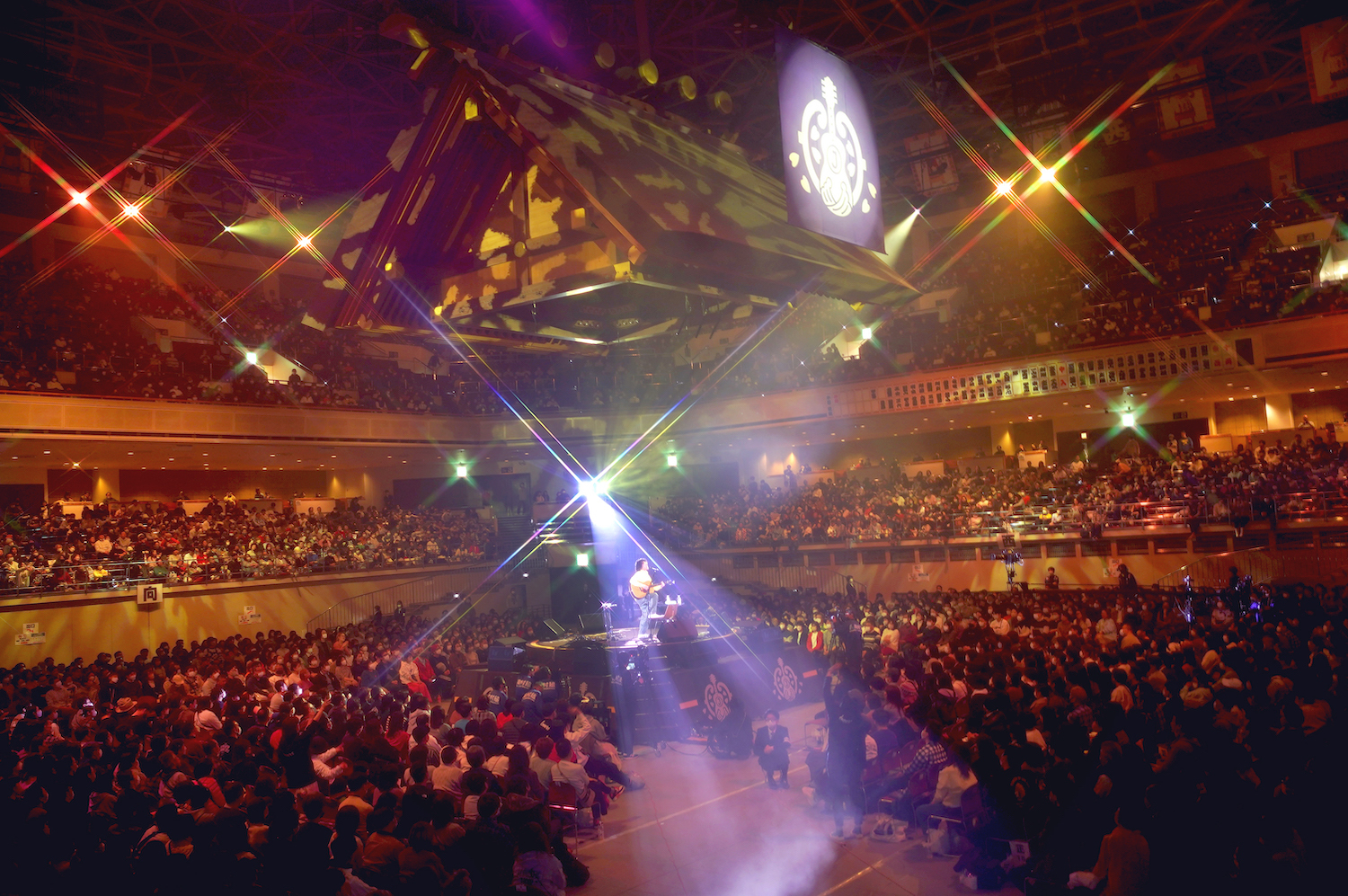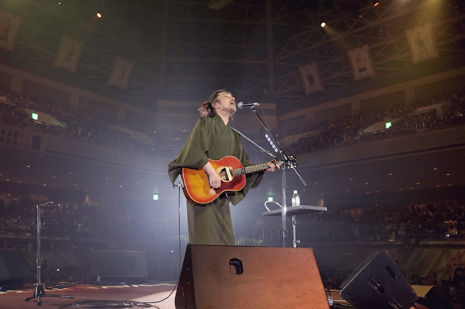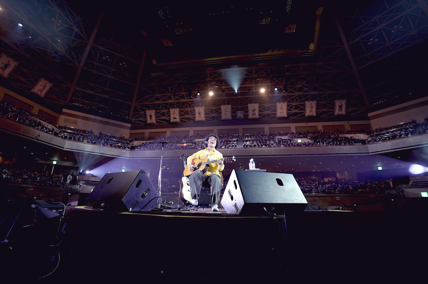 2013年に始まり、今年で8回目の開催となる『ギタージャンボリー』は、土俵に見立てたセンターステージをぐるりと360度かこむ客席と会場で、弾き語りでパフォーマンス。場内では「ちゃんこ」や「やきとり」といったさまざまな『相撲フード』も販売され、ライブでは実際の『呼出し』がアーティストを呼び込むという、両国国技館の特性を活かした『お楽しみ』も満載。
