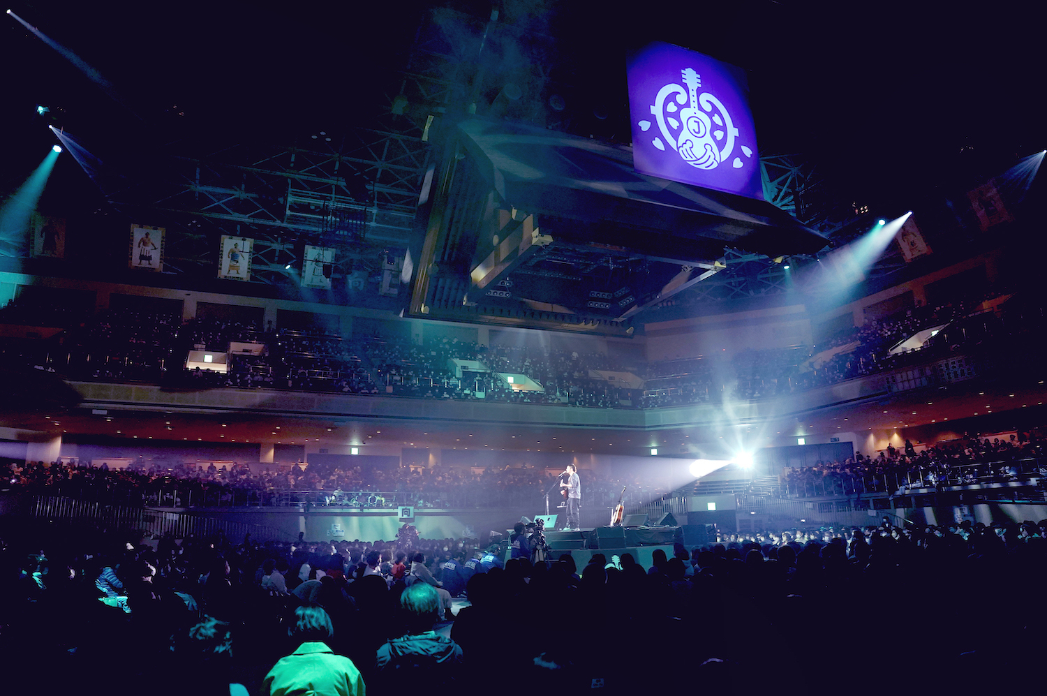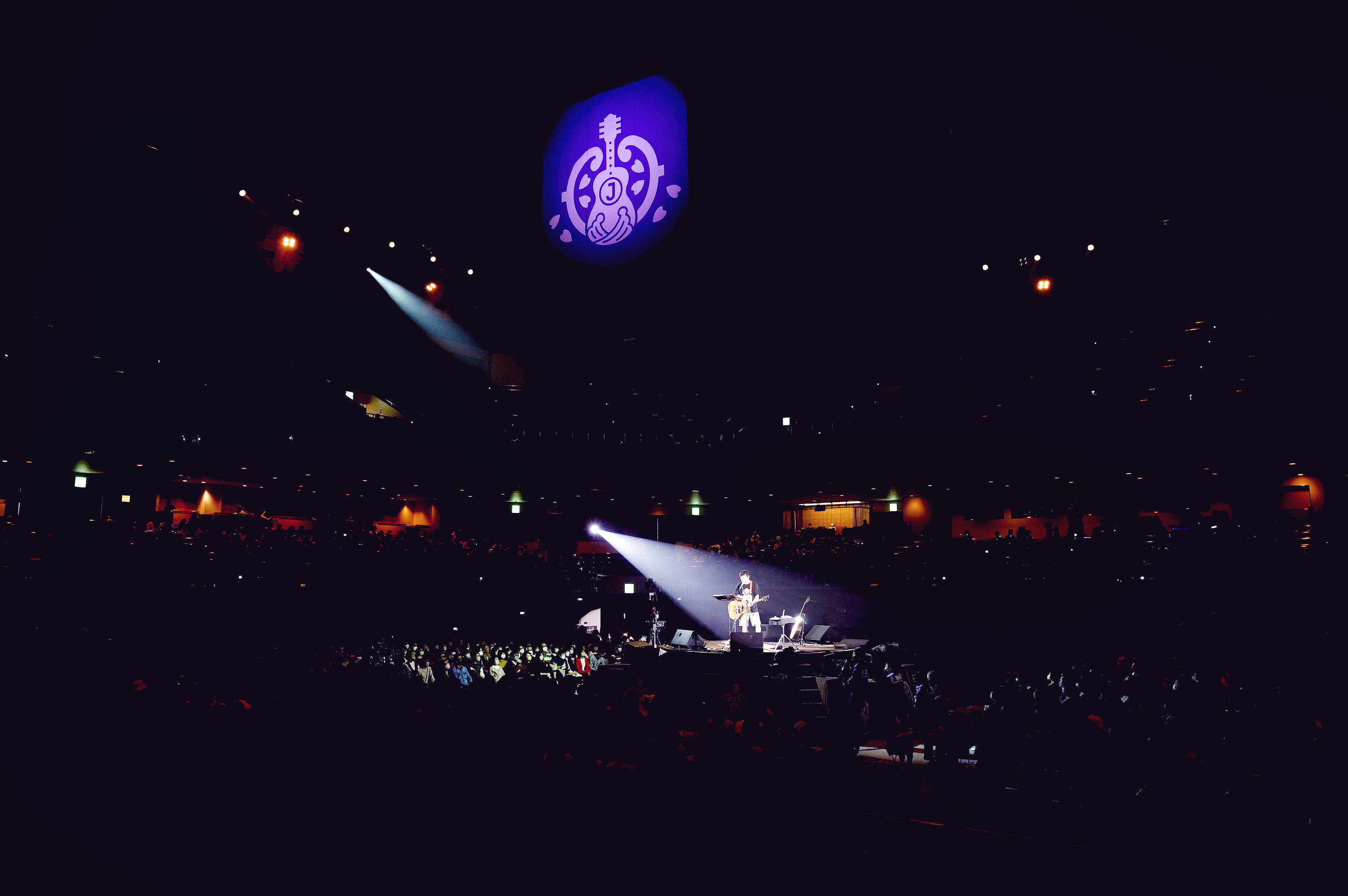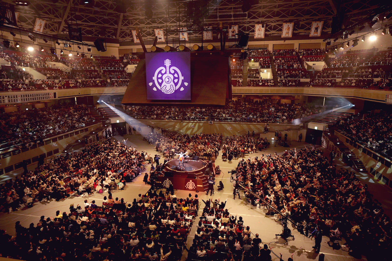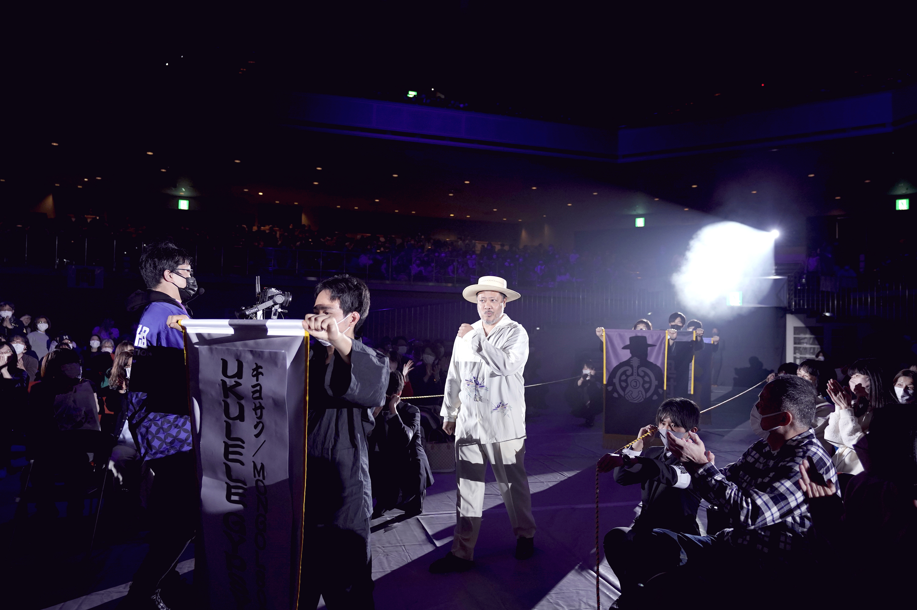 2013年に始まり、今年で8回目の開催となる『ギタージャンボリー』は、土俵に見立てたセンターステージをぐるりと360度かこむ客席と会場で、弾き語りでパフォーマンス。場内では「ちゃんこ」や「やきとり」といったさまざまな『相撲フード』も販売され、ライブでは実際の『呼出し』がアーティストを呼び込むという、両国国技館の特性を活かした『お楽しみ』も満載。