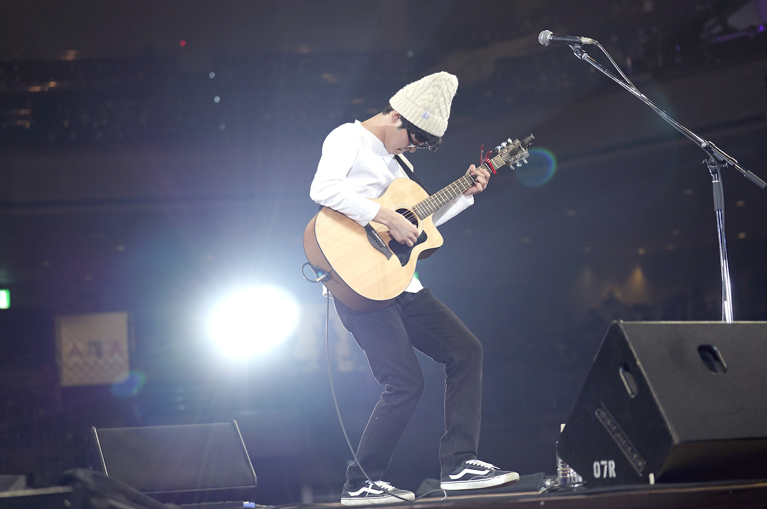 FMラジオ局J-WAVE(81.3FM)が、3月4日(土)・5日(日)の2日間、アーティストがギター弾き語りで共演するライブイベント『J-WAVE TOKYO GUITAR JAMBOREE 2023 supported by 奥村組』(以下、ギタージャンボリー)を両国国技館で開催した。千穐楽3月5日(日)のオフィシャル写真と、セットリストが到着した。